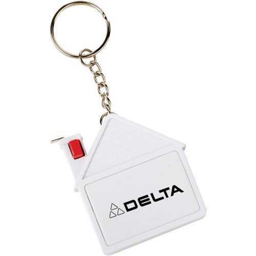 Porte-clés promotionnels personnalisés avec ruban à mesurer et bouton de déverrouillage pour agents immobiliers et entrepreneurs en aménagement résidentiel