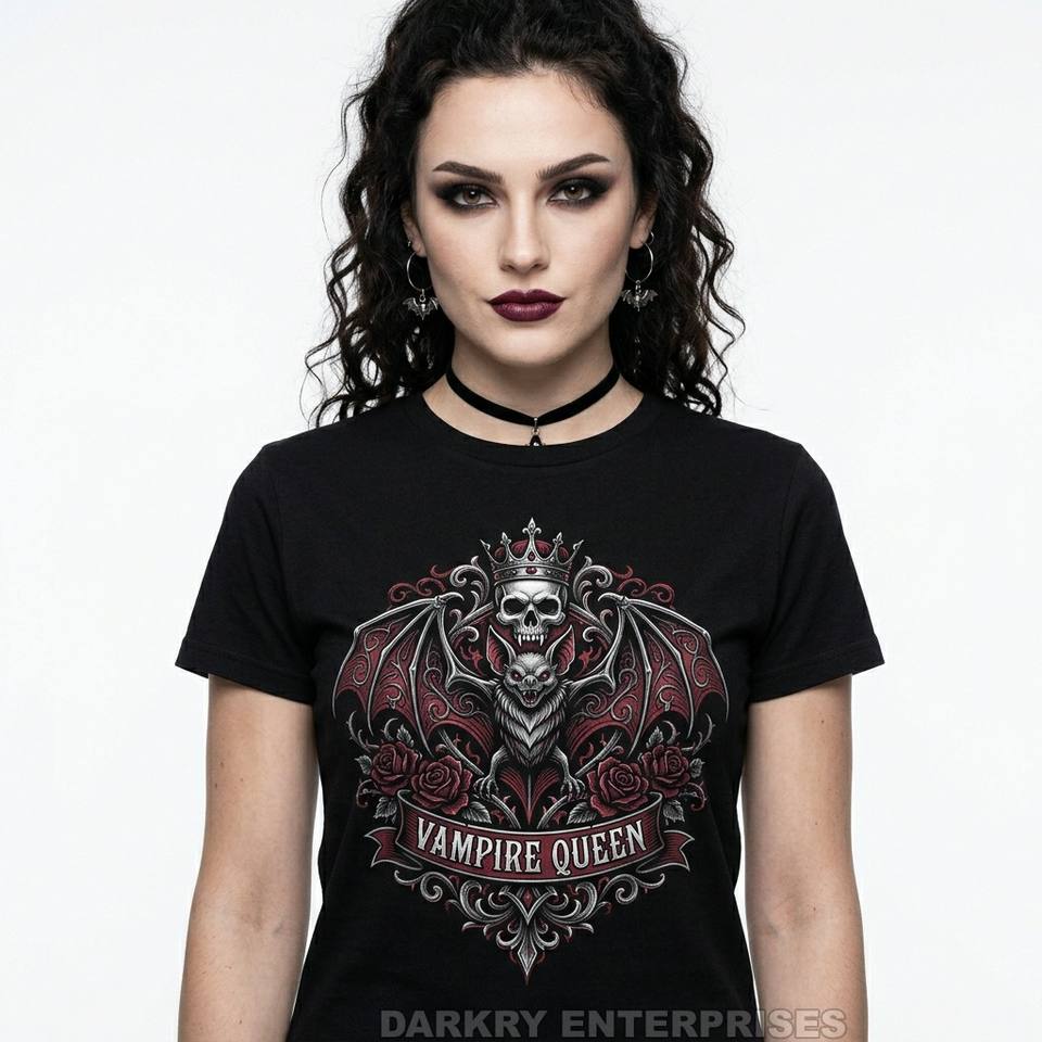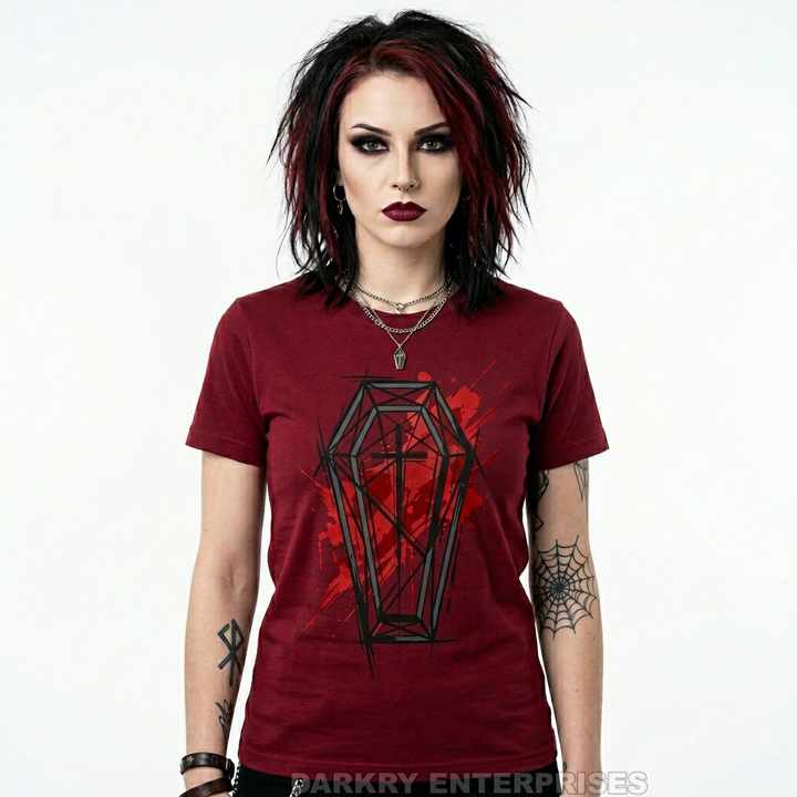 T-shirt Gothique Bordeaux Personnalisé avec Motif Cercueil pour Femme, Style Vampire, Haut en Coton Bordeaux, Fournisseur et Fabricant de Vêtements