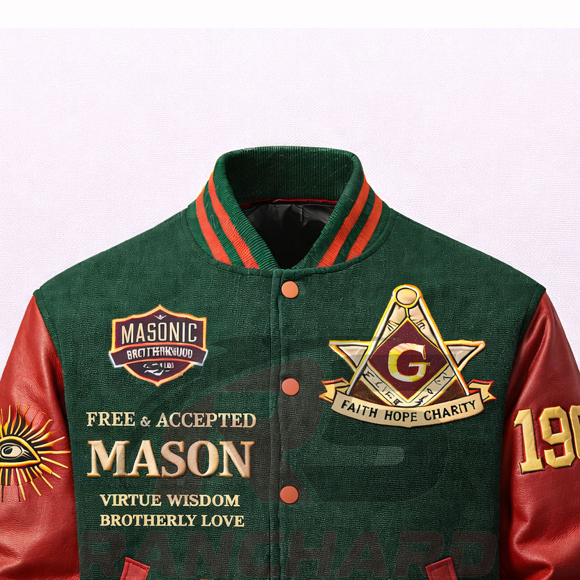 Veste universitaire personnalisée d'inspiration maçonnique – Corps en laine de qualité supérieure avec manches en cuir PU et symboles brodés
