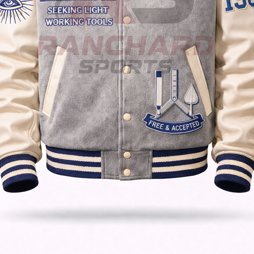 Veste universitaire personnalisée d'inspiration maçonnique – Corps en laine de qualité supérieure avec manches en cuir PU et symboles brodés