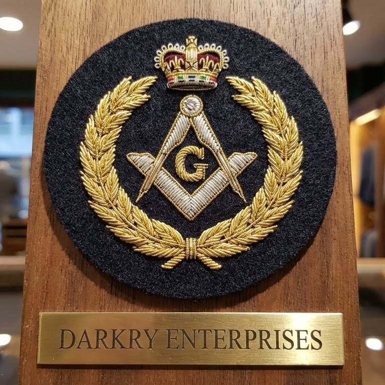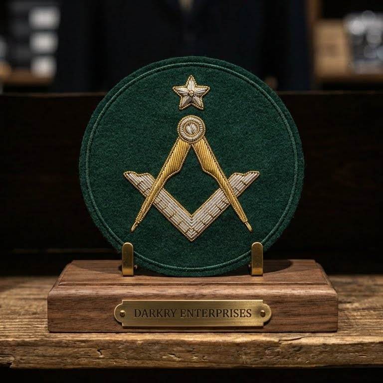 Écusson de broderie en fil de soie personnalisé pour insignes maçonniques, en feutre vert, avec couronne triangulaire dorée, badge de loge, accessoire d'uniforme