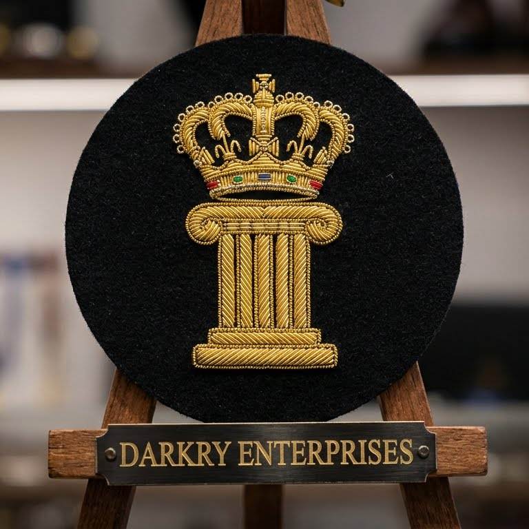 Badge brodé fait main en fil de soie pour insignes maçonniques personnalisés, lettre G avec couronne
