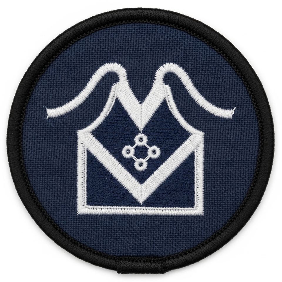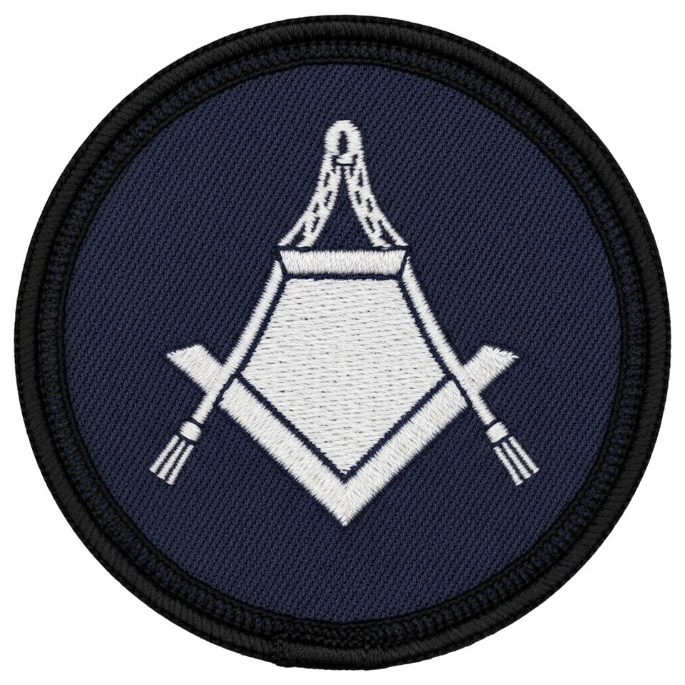 Écusson thermocollant personnalisé pour insignes maçonniques, motif boussole dorée et pilier, pour la décoration de vêtements de franc-maçonnerie, écusson brodé à la machine en forme de cercle, fabrication en usine