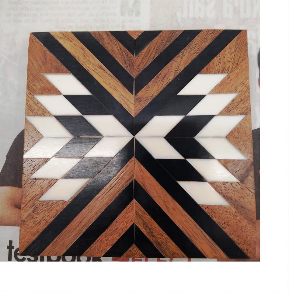 Bone And Brass Inlay Wood Coaster
