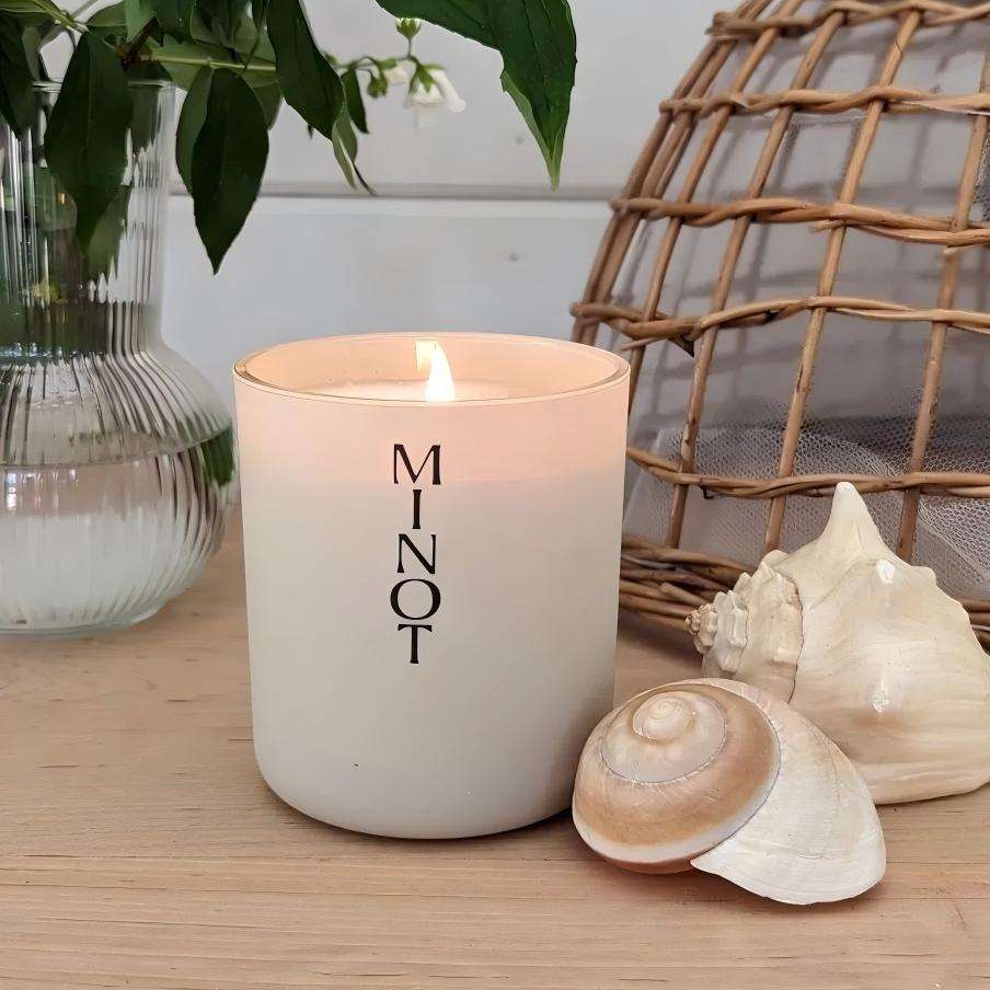 Bougies parfumées de luxe en cire de soja écologique, en pot mat personnalisé.