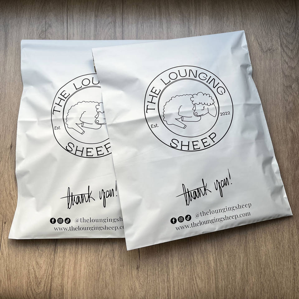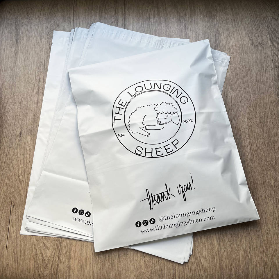 Enveloppes en polyéthylène blanches mates personnalisées avec impression noire - Sacs d'expédition imperméables pour vêtements et e-commerce