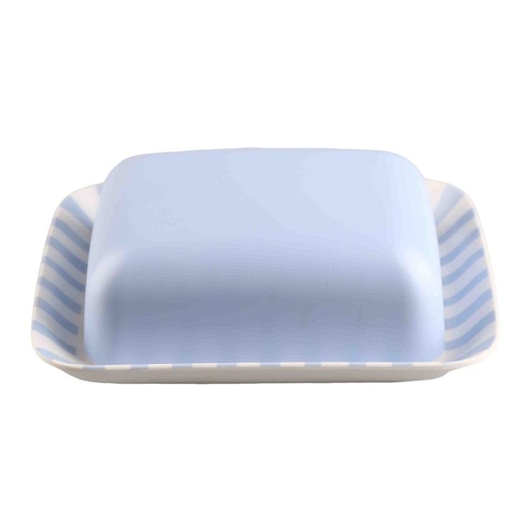Assiette à dîner en mélamine personnalisée, design rayé bleu, vaisselle promotionnelle en plastique durable, Kind ML992942-1