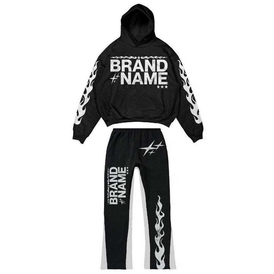 Survêtement 2 pièces personnalisé pour hommes sweat à capuche avec impression DTG et pantalon évasé tenue de rue décontractée à la mode