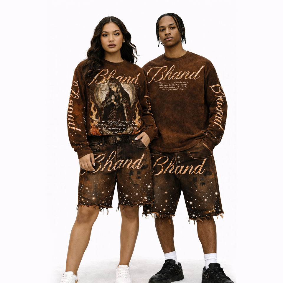 Ensemble T-shirt et short en jean pour homme, coupe ample, délavé à l'acide, col rond, ourlet brut, strass, tenue en jean