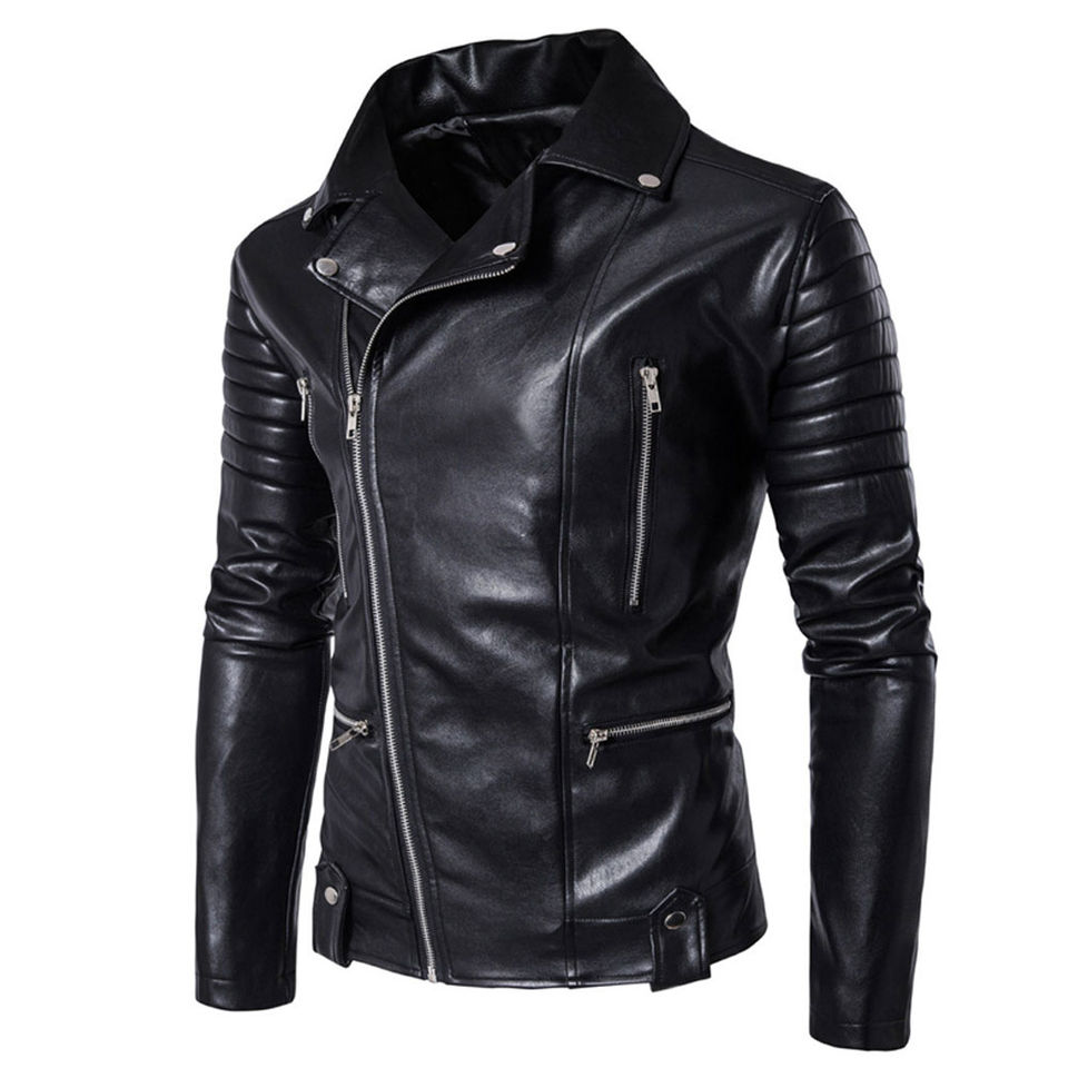 Veste en cuir véritable noire pour homme, coupe ajustée, style motard, imperméable, coupe-vent, en cuir de vachette de qualité supérieure, fermeture éclair, manteau d'hiver