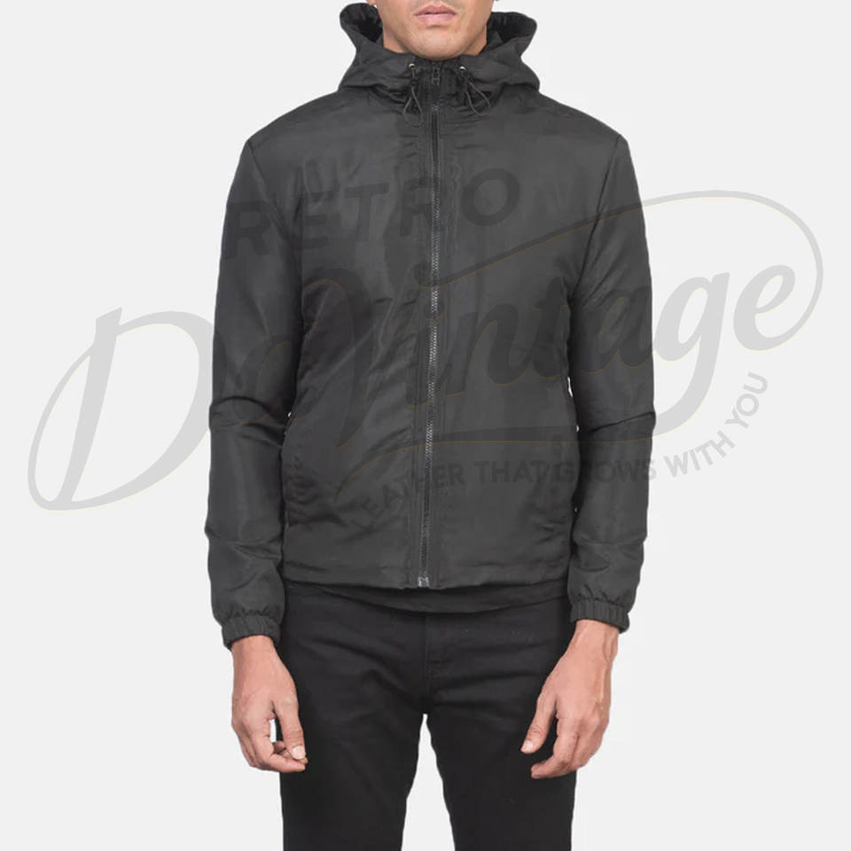 Veste à capuche légère noire pour homme, coupe slim, coupe-vent, zippée, pour le printemps et l'automne