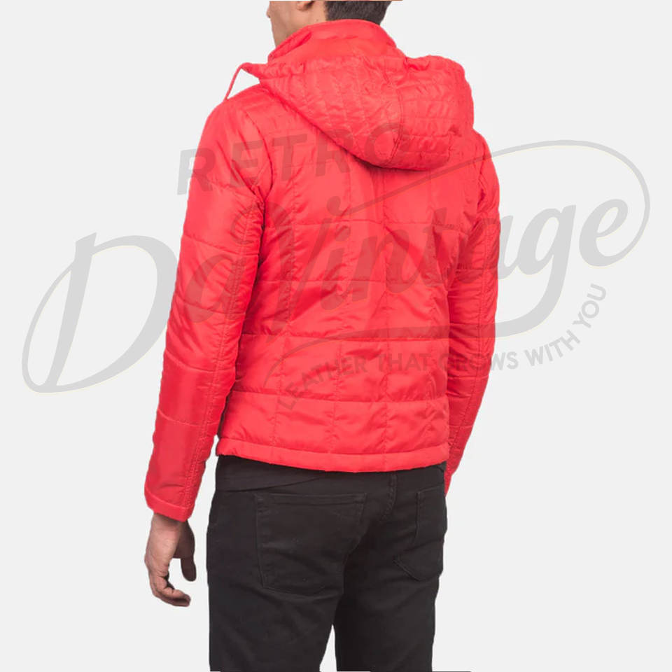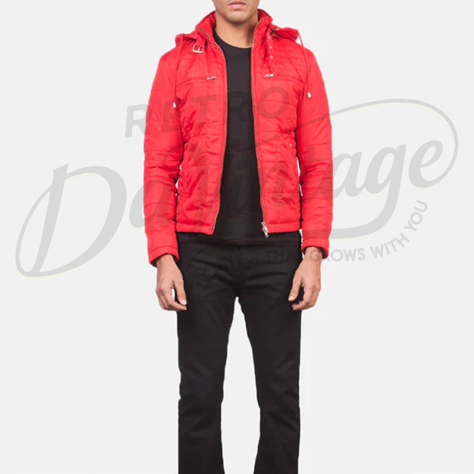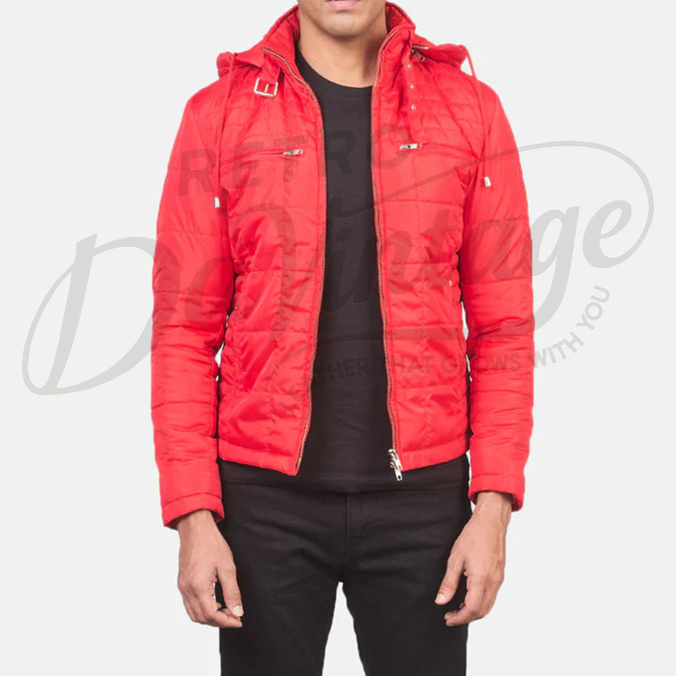 Veste d'hiver matelassée rouge vif pour homme, coupe ajustée, à capuche, chaude, rembourrée, décontractée, style doudoune