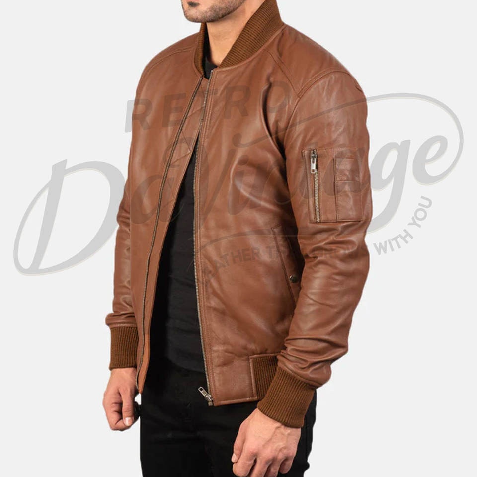 Blouson aviateur en cuir marron pour homme, personnalisé, avec détails matelassés en losanges, coupe ajustée, en cuir d'agneau véritable, style MA-1.