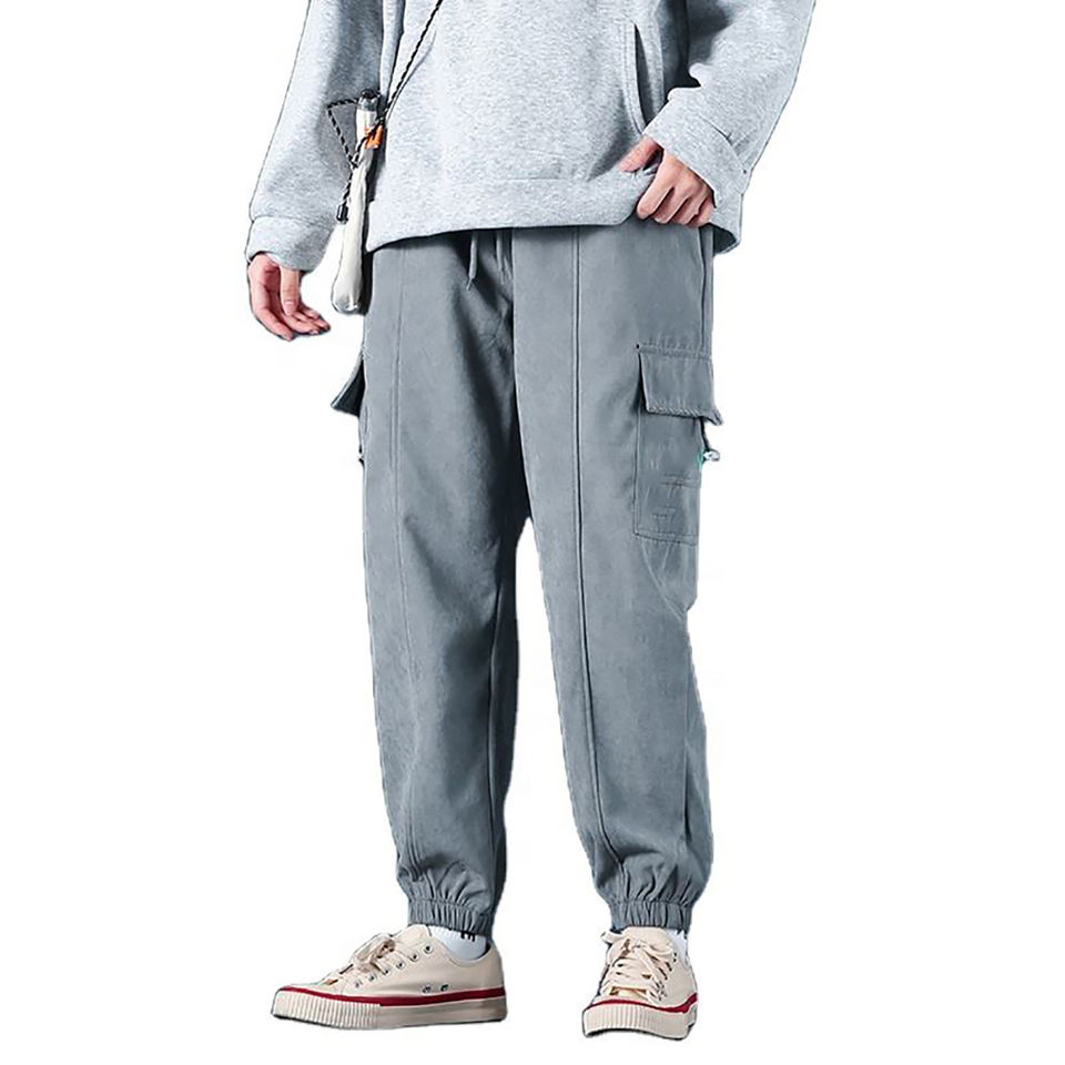 Pantalon Cargo personnalisé pour hommes Pantalon de fitness de couleur unie avec poches latérales Pantalon en toile décontracté avec cordon de serrage Techniques brodées