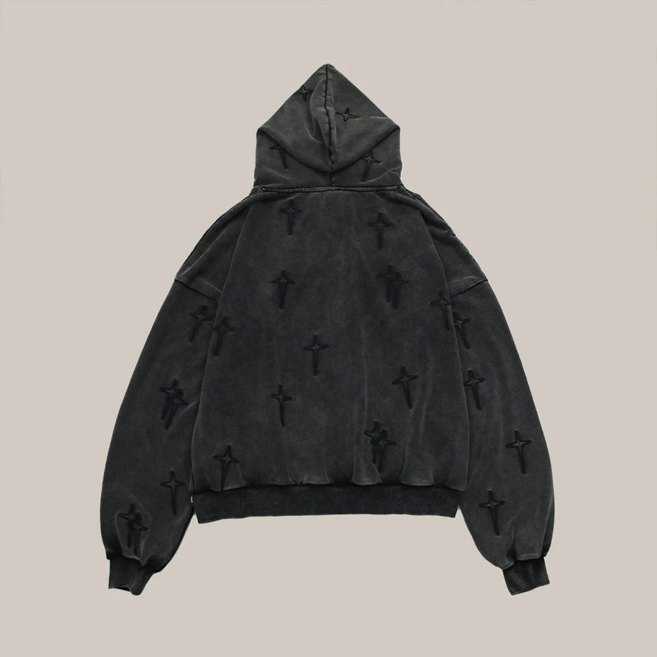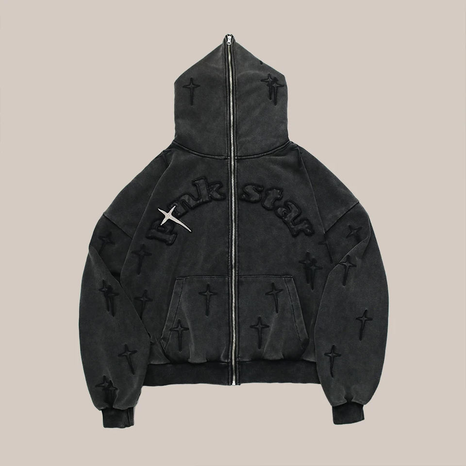Sweat-shirt à capuche unisexe à fermeture éclair sur le devant, coupe ample, col montant, épaules tombantes, style vintage, délavé à l'acide, pour homme, 2025