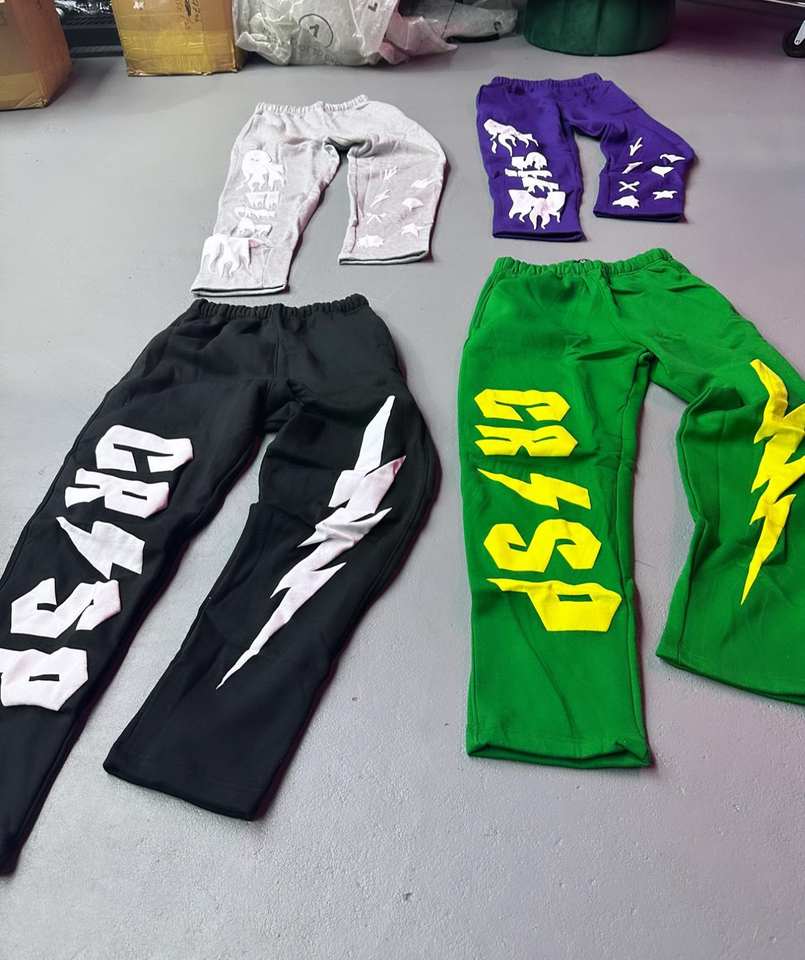 Streetwear brodé personnalisé pour hommes impression 3D bouffante pantalon de survêtement empilé en éponge française pantalon de survêtement évasé en polaire High Street