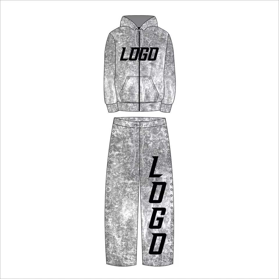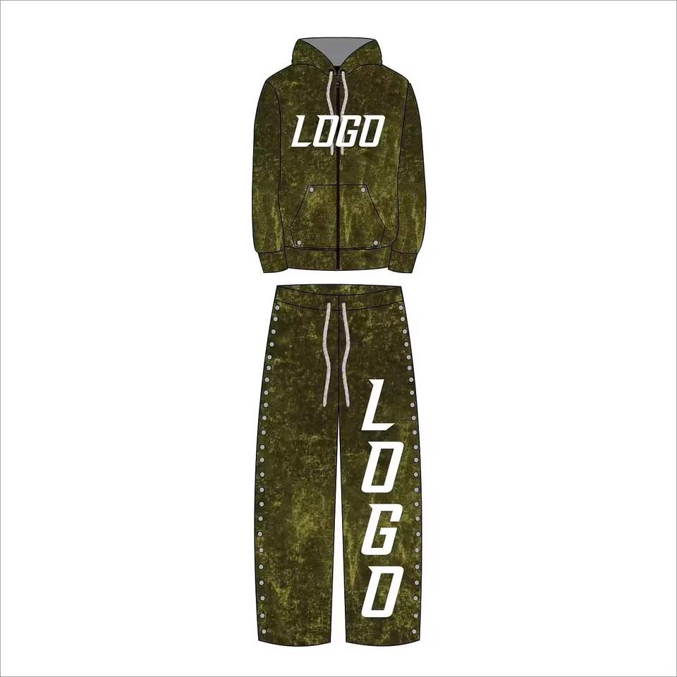 Pantalon de survêtement évasé personnalisé pour homme avec broderie, 100 % coton, fermeture éclair latérale, ensemble deux pièces empilé