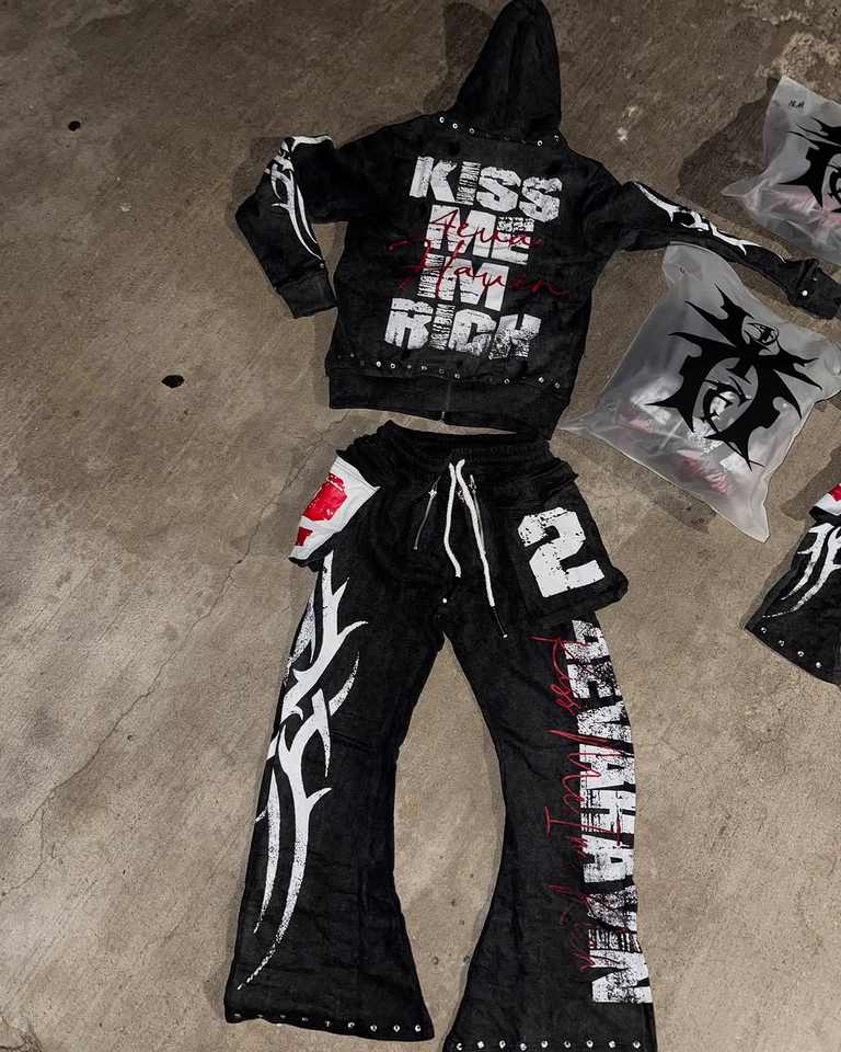 Ensemble survêtement et sweat-shirt pour homme personnalisé, en molleton épais, coupe courte, impression sérigraphique de haute qualité, style vintage