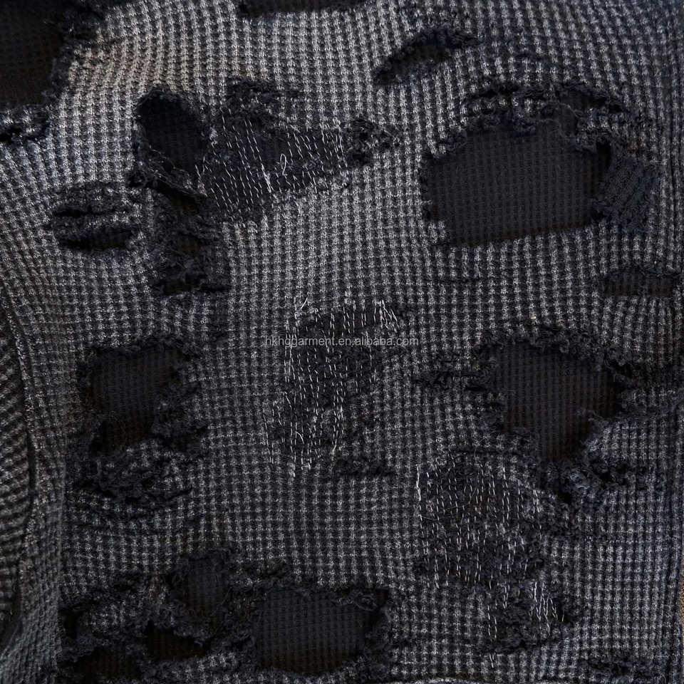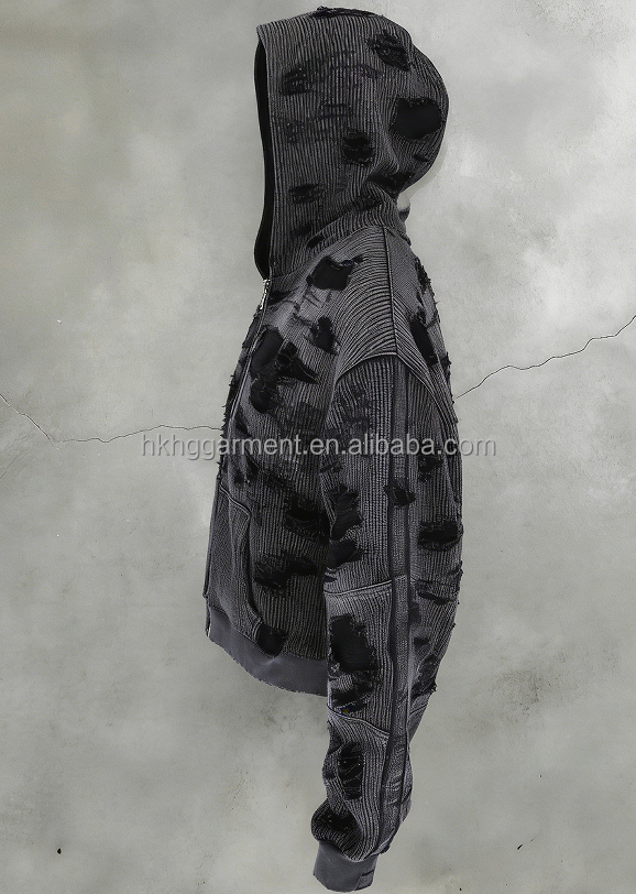 Sweat à capuche zippé personnalisé pour homme, épais, en molleton gaufré double couche, délavé, effet usé et déchiré