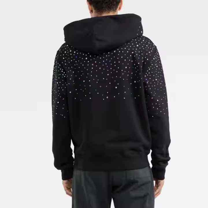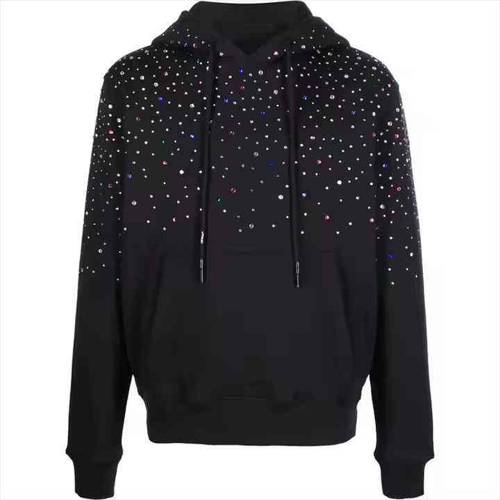 Sweat-shirts à capuche en molleton de coton lourd de haute qualité pour hommes, personnalisés, couleur pleine, ornés de diamants, avec strass