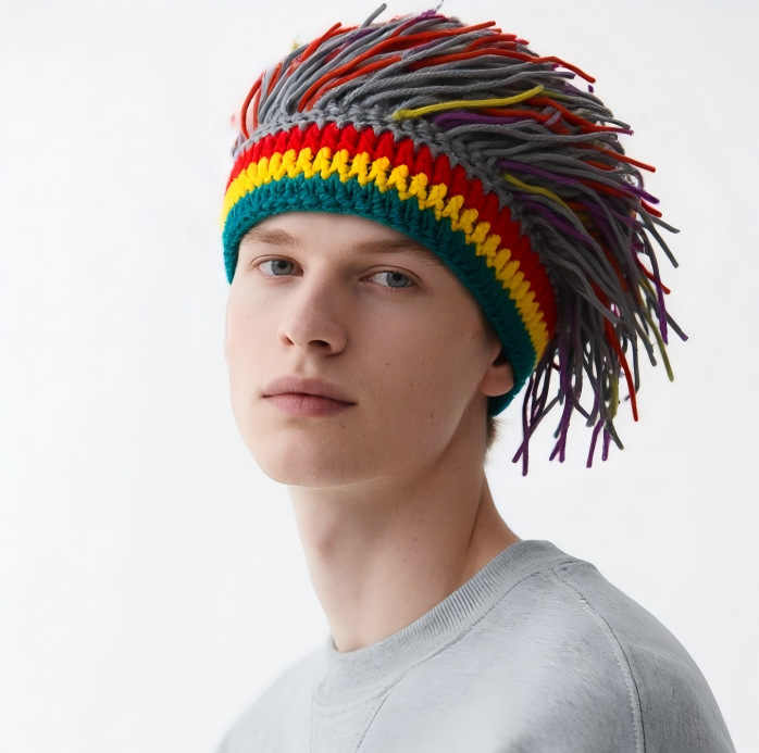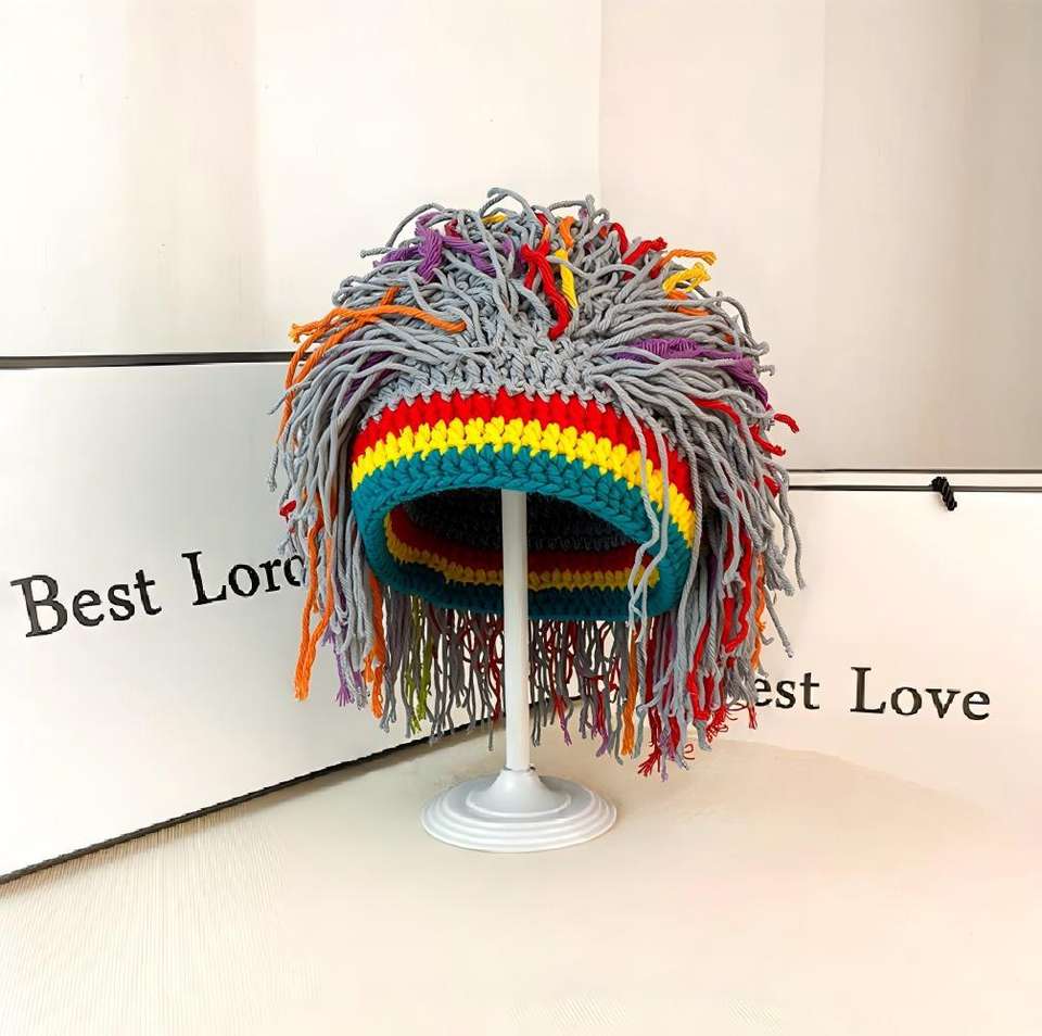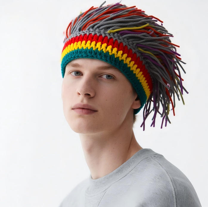 Personnalisé Hommes Tricot Chapeau avec Cheveux Garçons Drôle À La Main À Tricoter