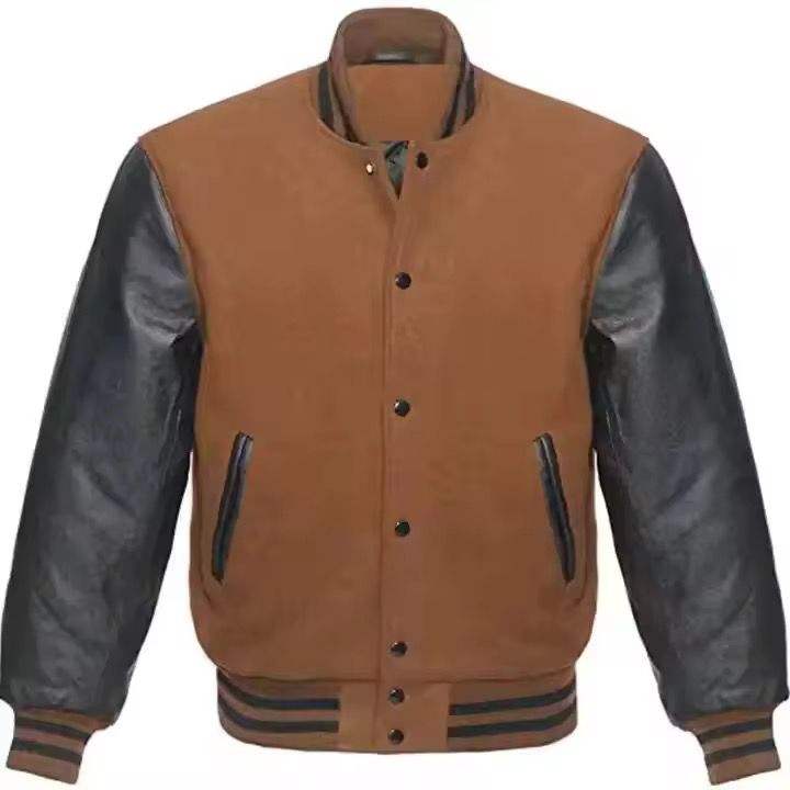 Vestes universitaires personnalisées pour hommes, style baseball, chaudes pour l'hiver, manches en cuir d'agneau, logo brodé, boutons, lycée, 2026