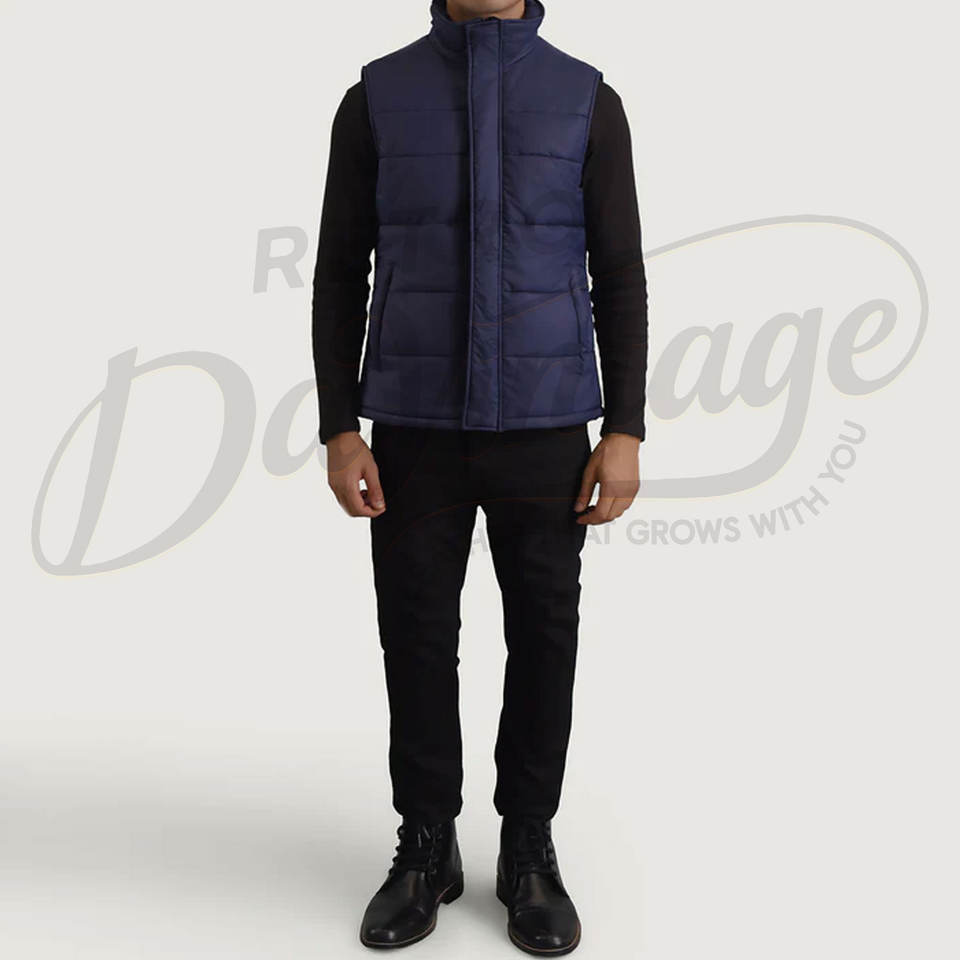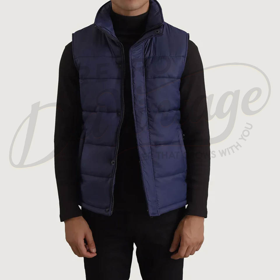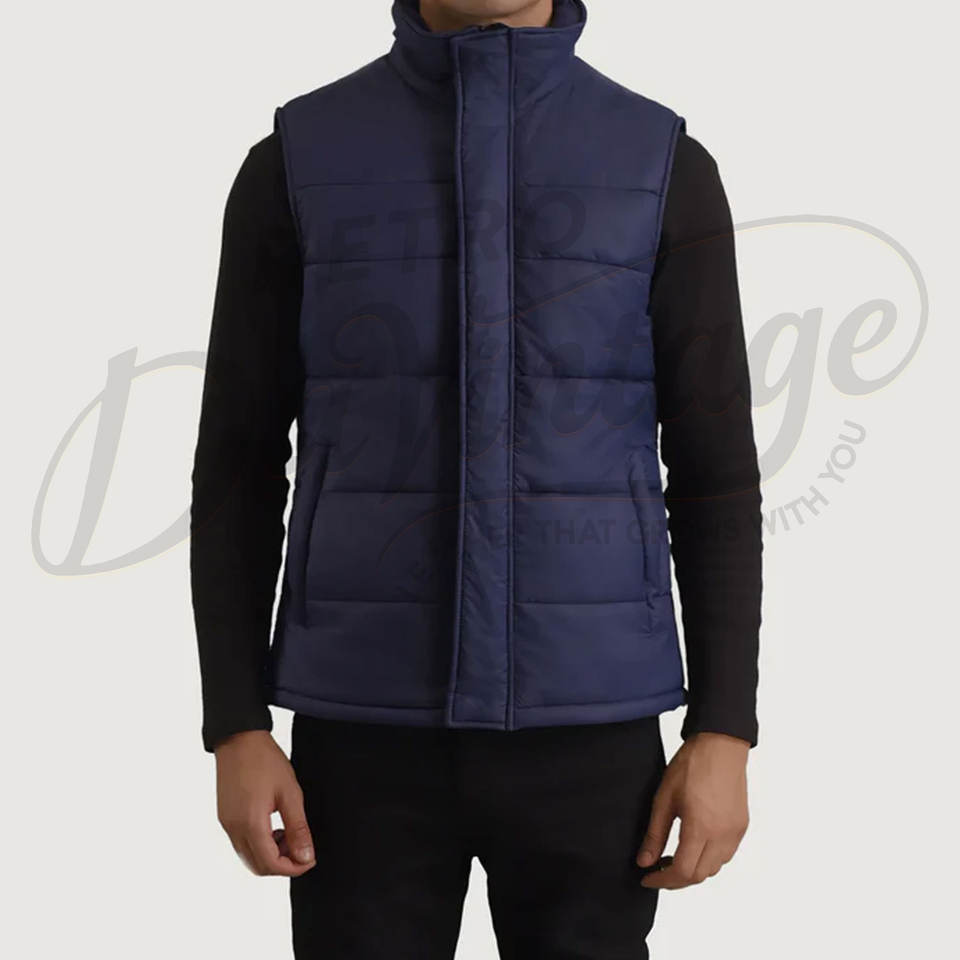 Gilet matelassé personnalisé pour homme, bleu marine, chaud pour l'hiver, col montant, imperméable, sans manches