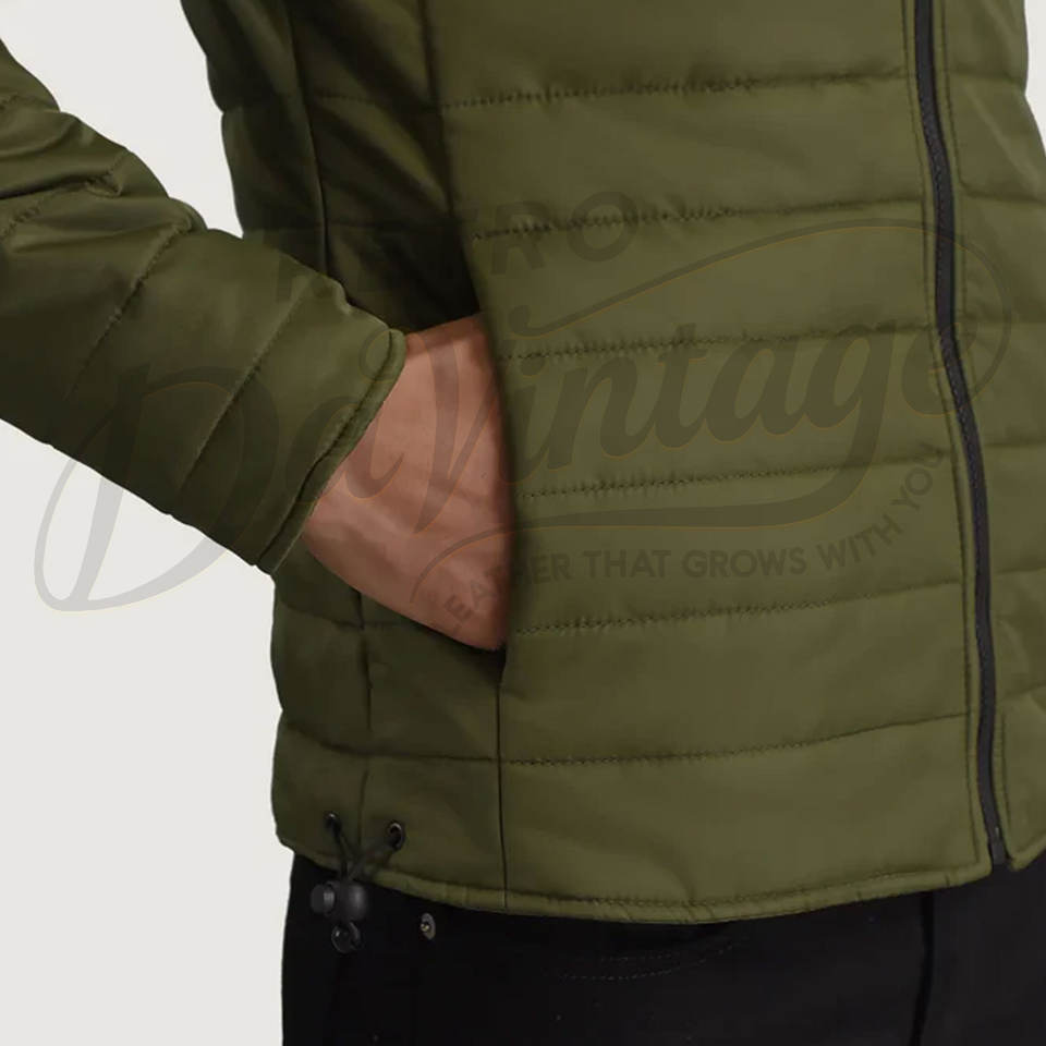 Veste d'hiver pour homme, couleur olive, légère, à capuche, rembourrée, coupe slim, décontractée, chaude, zippée, style puffer.