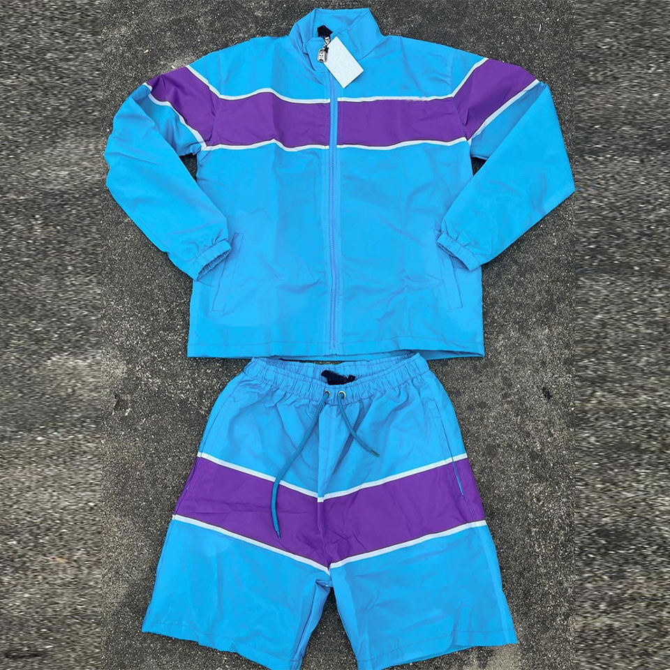 Ensemble de survêtement personnalisé pour homme grande taille, respirant, imprimé, veste zippée et short bleu, deux pièces, léger, coupe-vent thermique