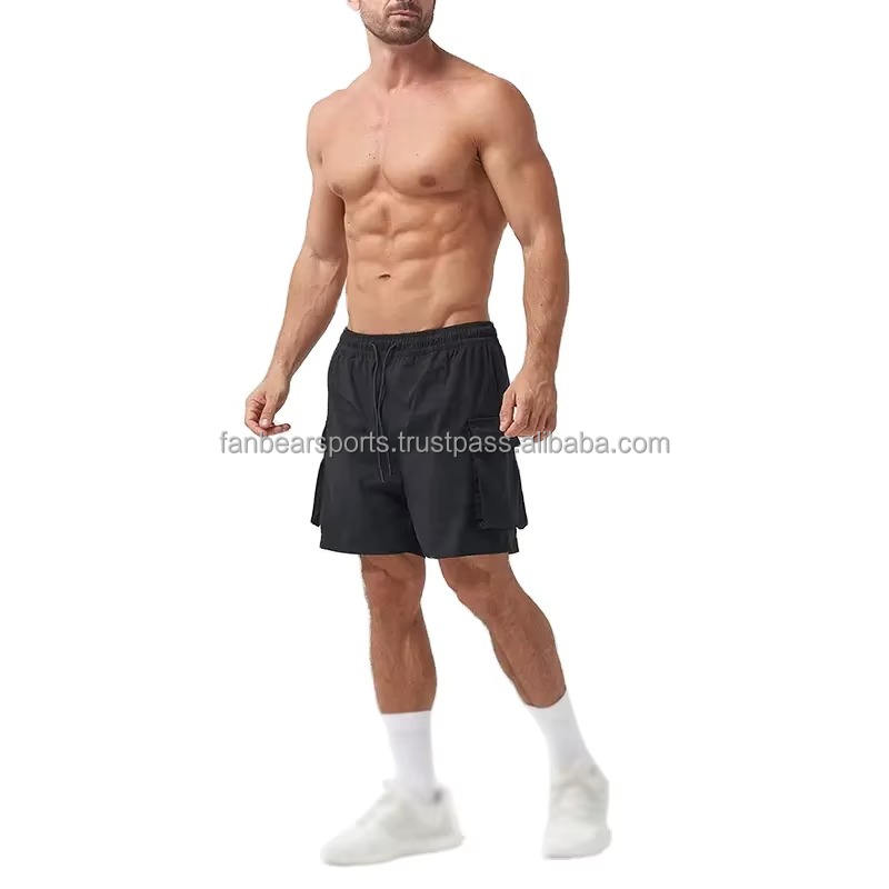 Shorts de sport pour hommes personnalisés à séchage rapide, noirs, avec cordon de serrage et logo, fournisseur OEM d'articles de sport, dernier design