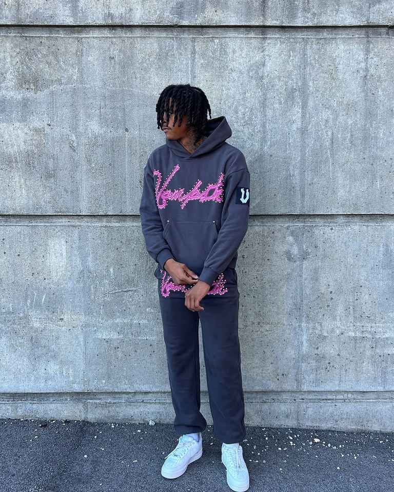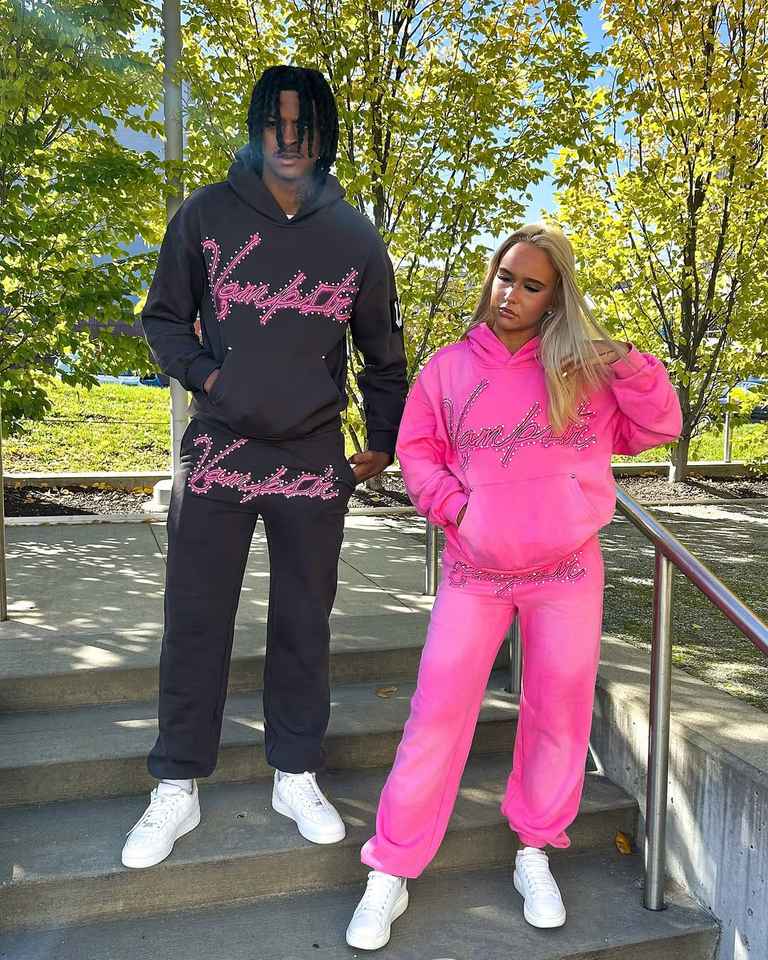 Ensemble survêtement deux pièces pour homme personnalisé, lourd, avec strass, impression sur écran, pantalon de survêtement et sweat-shirt avec poches zippées