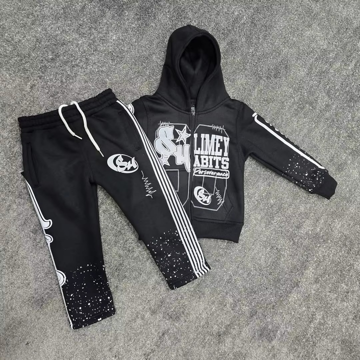 Ensemble de survêtement personnalisé pour homme avec broderie, sweat à capuche zippé et pantalon évasé