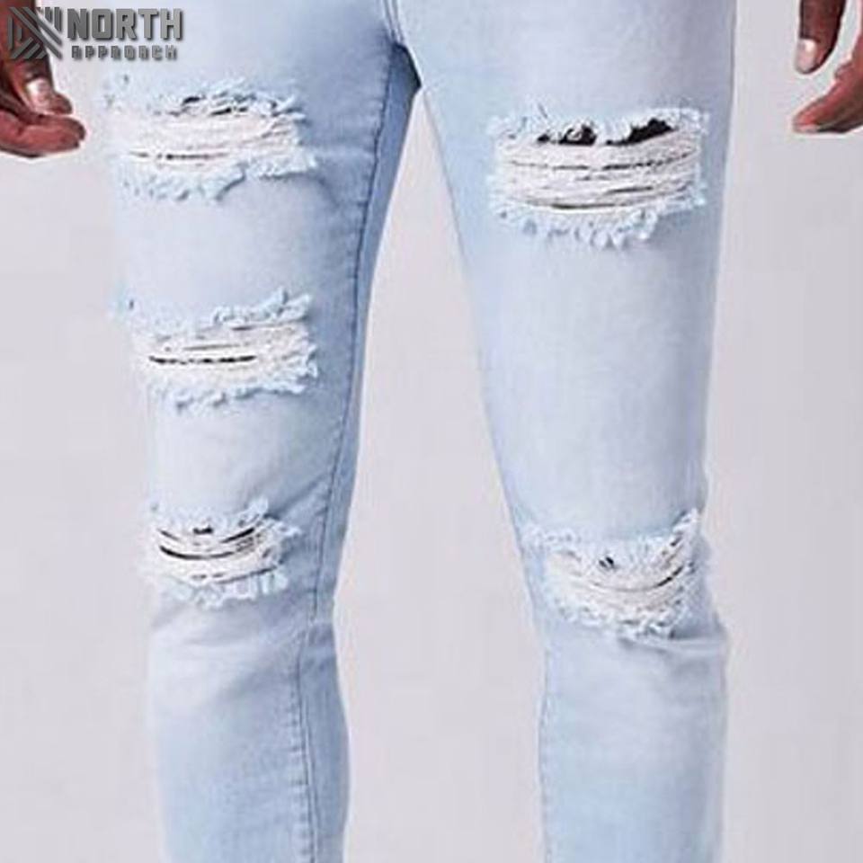 Jeans en denim déchirés de coupe droite pour hommes automne hiver service OEM de séchage rapide de haute qualité prix de gros bon marché