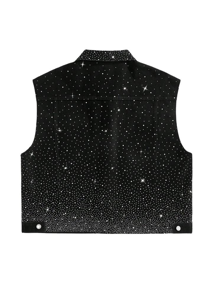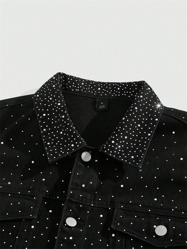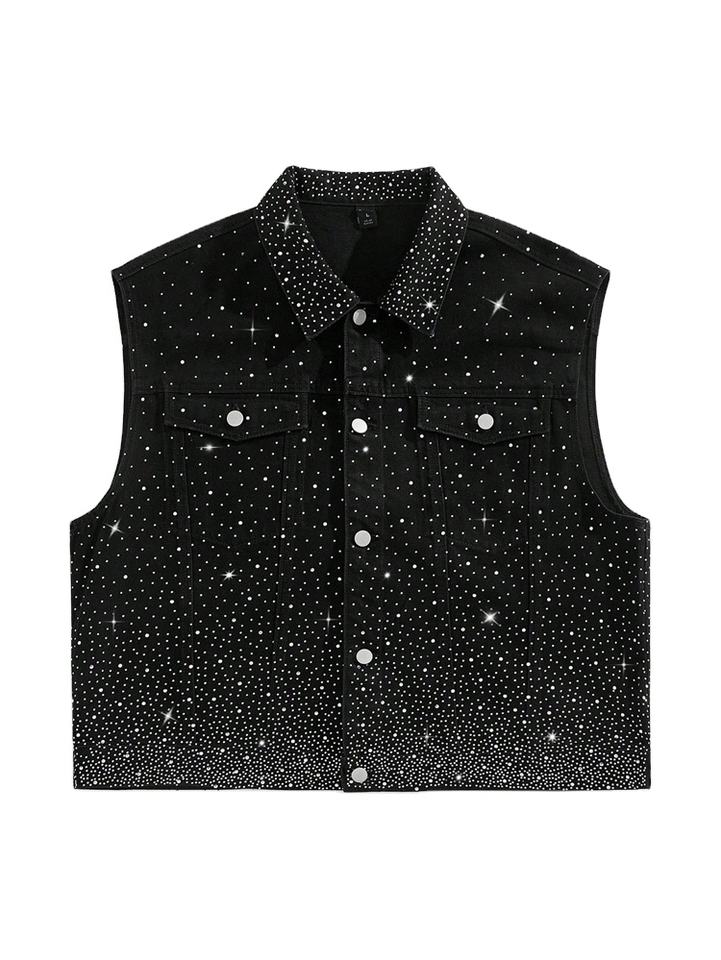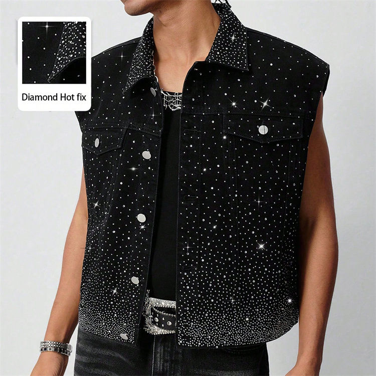 Personnalisé hommes rue vie strass chemise décontractée bouton avant sans manches poche décontracté Denim haut chemise strass personnalisation