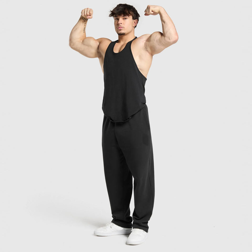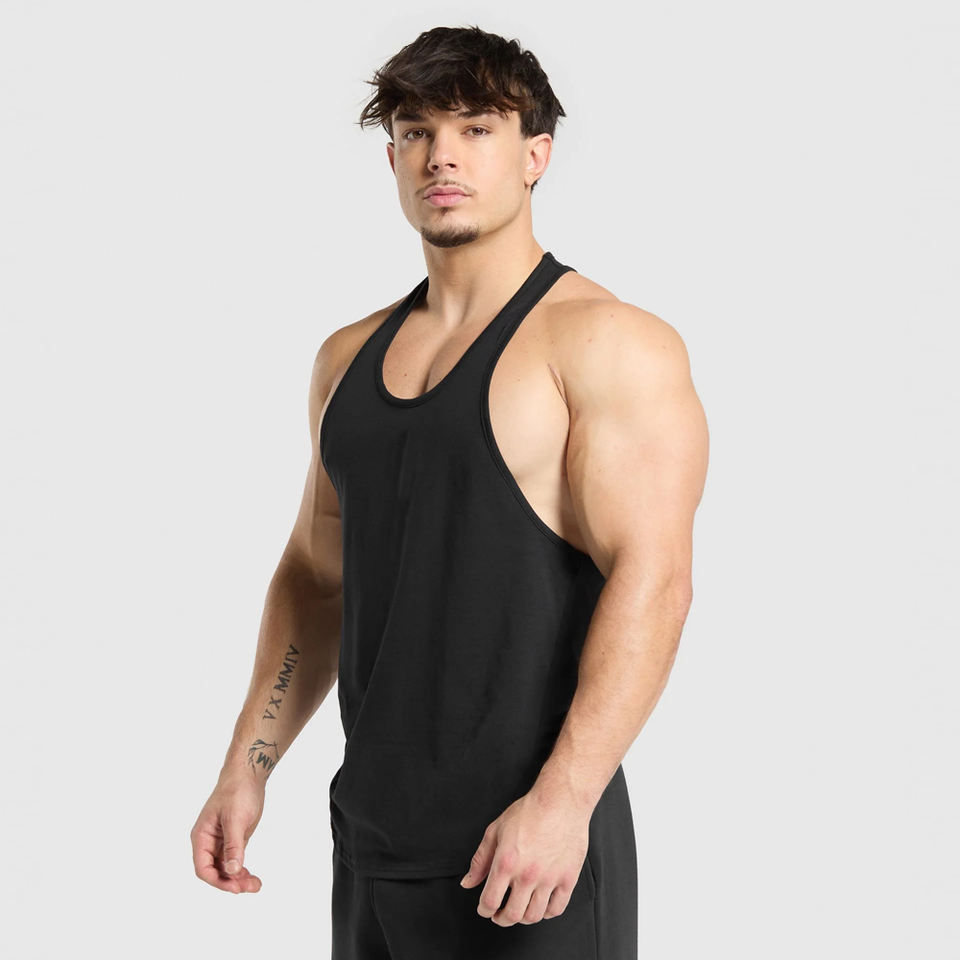Débardeur Stringer Personnalisé pour Homme Noir Polyester/Coton Gym Fitness Sans Manches Musculation Séchage Rapide Style Urbain Personnalisé