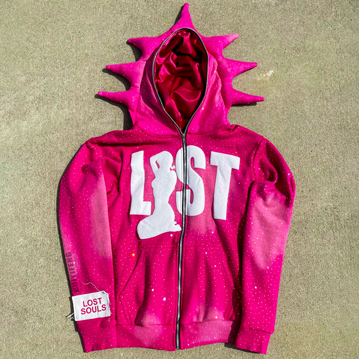 Personnalisé Hommes Épais Français Terry Transfert Rhin Pierre Streetwear Ébloui Bling Rinestoned Fermeture Éclair Complète Avec Logo Strass
