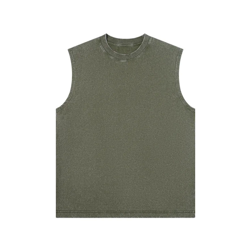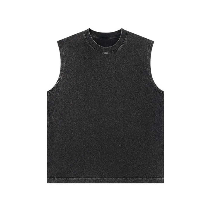 Gilet sans manches délavé et vieilli pour homme, 100 % coton respirant, écologique, style rétro urbain, coupe ample, décontracté