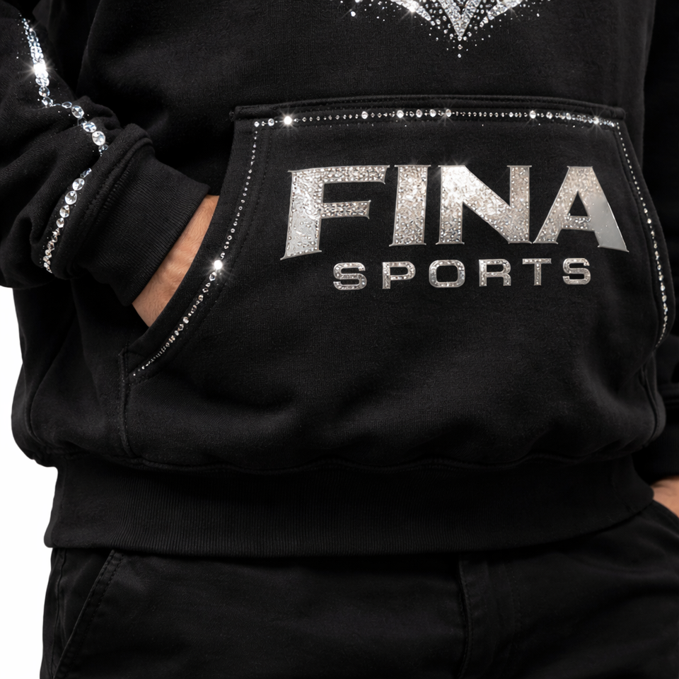 Sweat-shirt à capuche surdimensionné personnalisé pour homme, hiver, strass, streetwear de luxe, coton épais, avec poche, cristaux scintillants FS