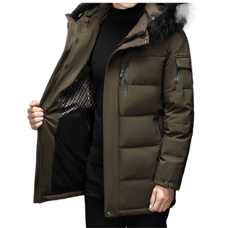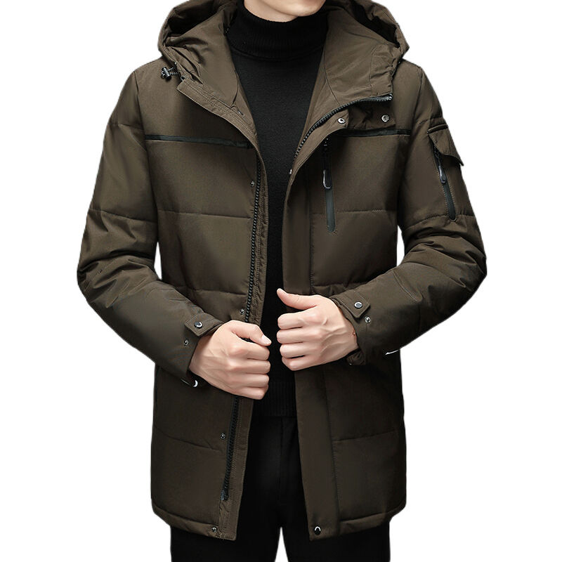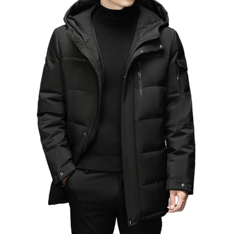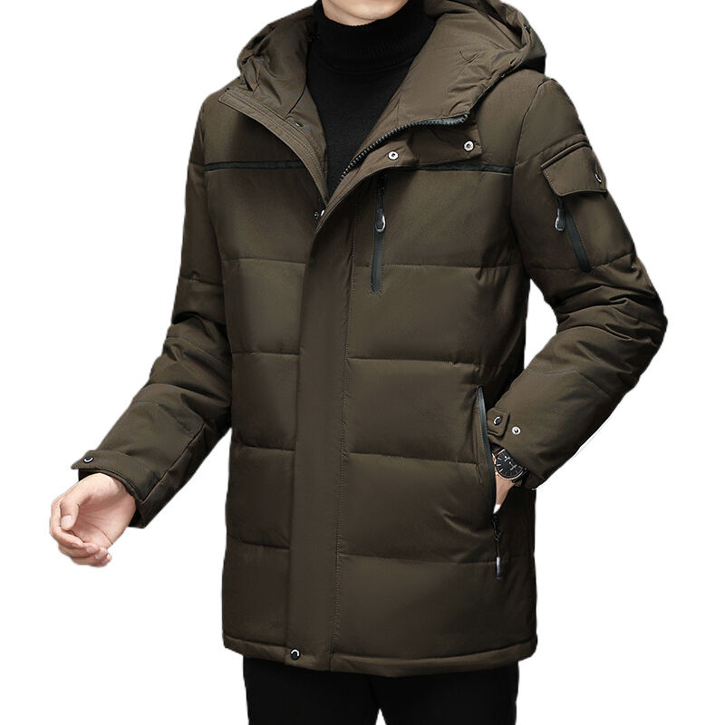 Veste d'hiver pour homme personnalisée, en polyester coupe-vent, mi-longue, avec capuche, en duvet, vêtements pour homme, veste matelassée