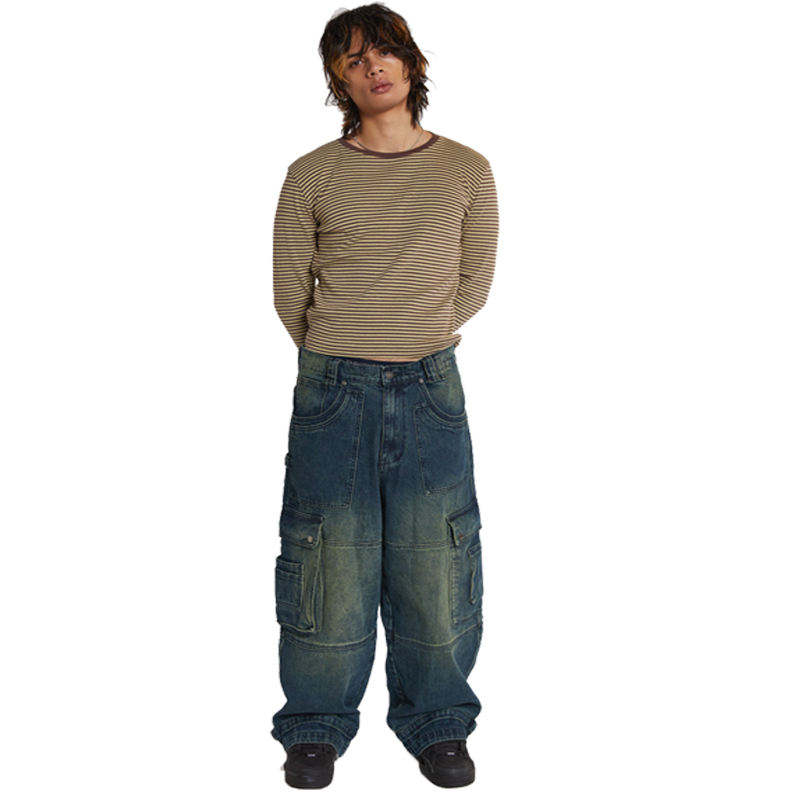 Jean cargo en denim lourd, coupe extra large, avec sangle ajustable à l'ourlet, double poche avant, style cargo, unisexe, homme et femme, personnalisé