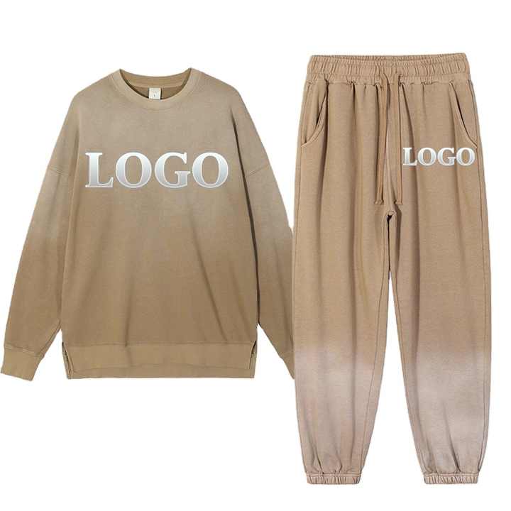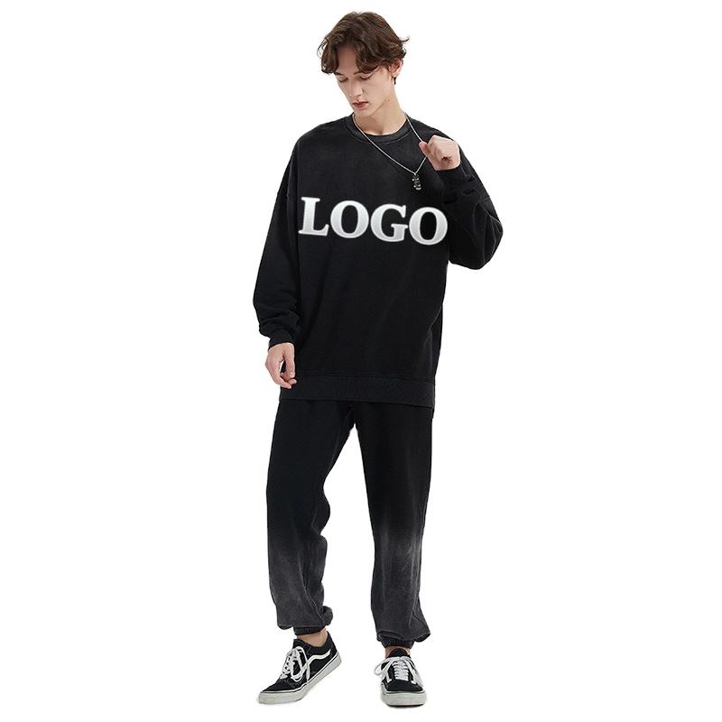 Ensemble de sweat à capuche et pantalon de survêtement pull-over surdimensionné 100% coton pour hommes sweatshirts de survêtement à col à capuche à motif solide