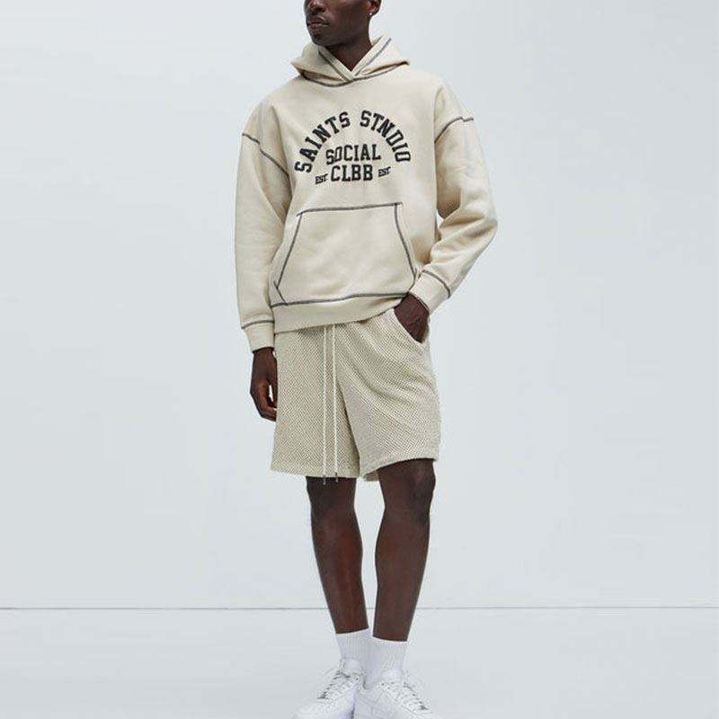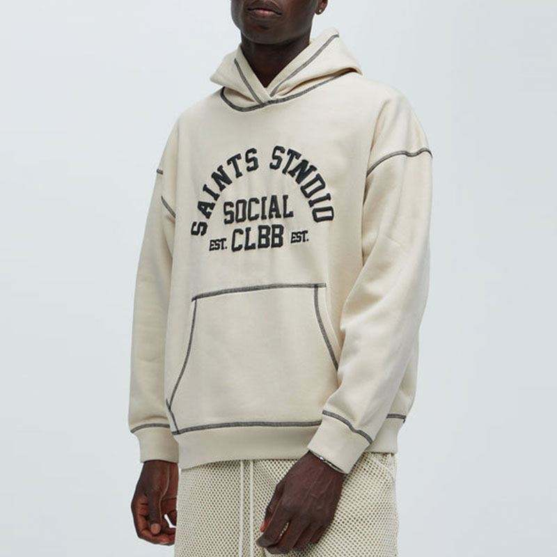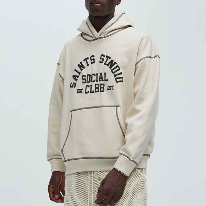 Sweat à capuche surdimensionné en coton 100% pour homme, avec impression en relief et surpiqûres inversées, pour la saison d'automne