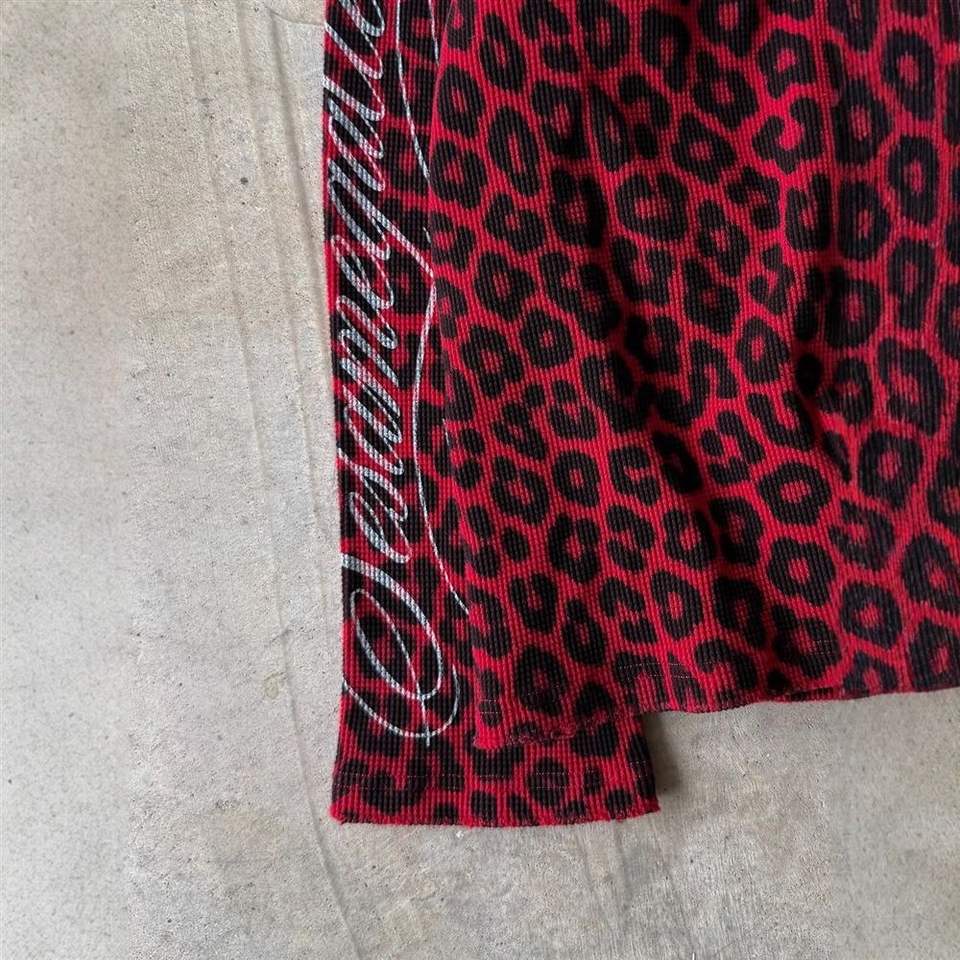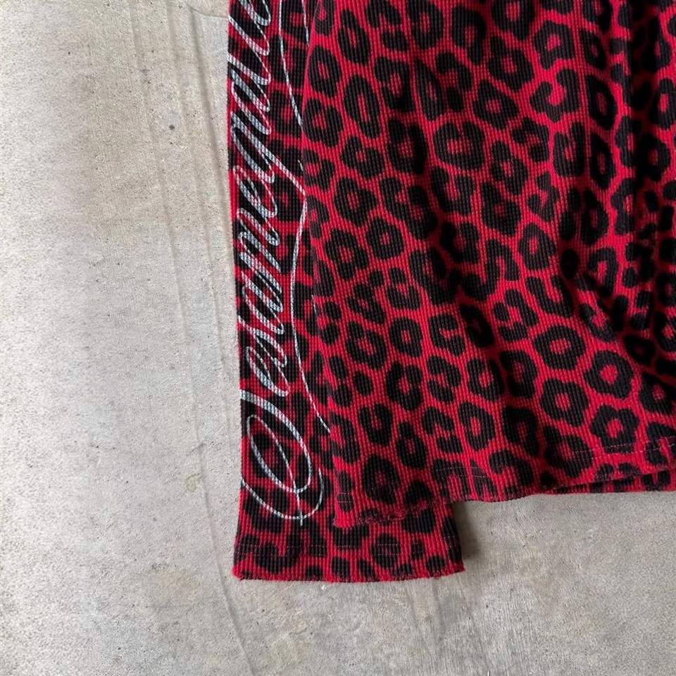 T-shirt en tricot à manches longues surdimensionné de haute qualité pour homme, 100% coton, imprimé léopard rouge gaufré, style streetwear