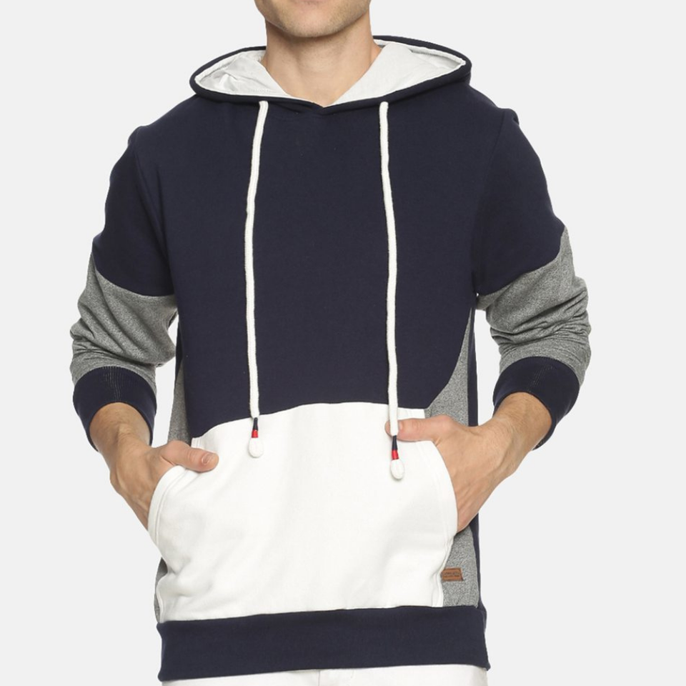 Pull d'hiver 100% coton pour hommes personnalisé Sweat à capuche Streetwear à motif solide avec broderie et sérigraphie en blocs de couleurs