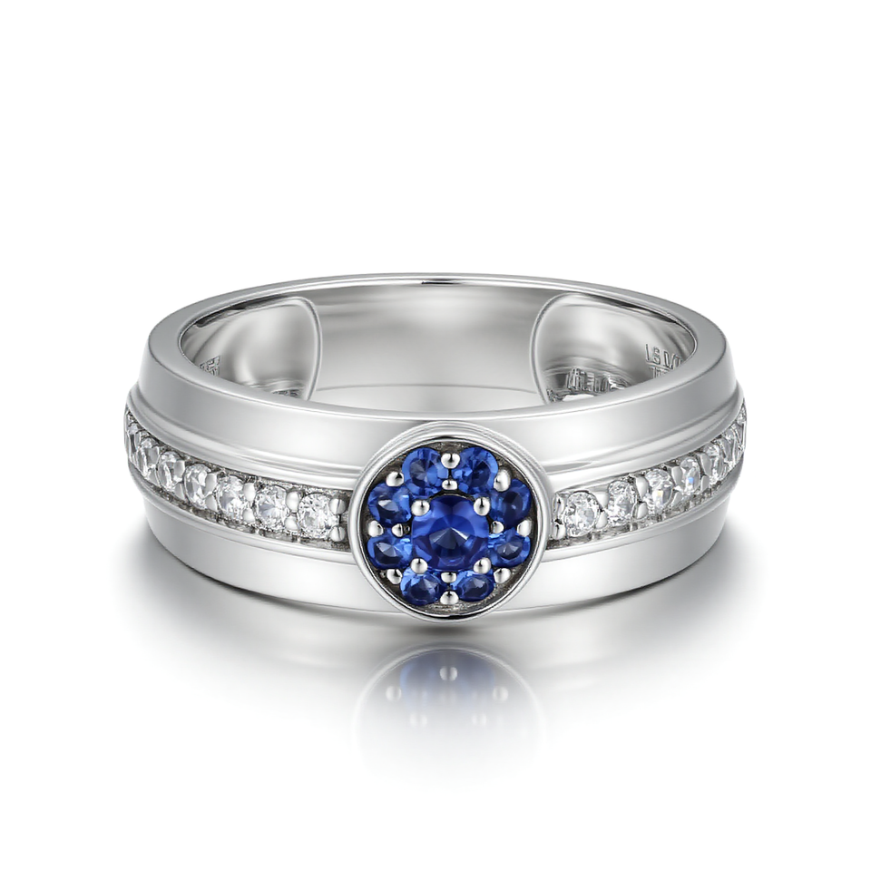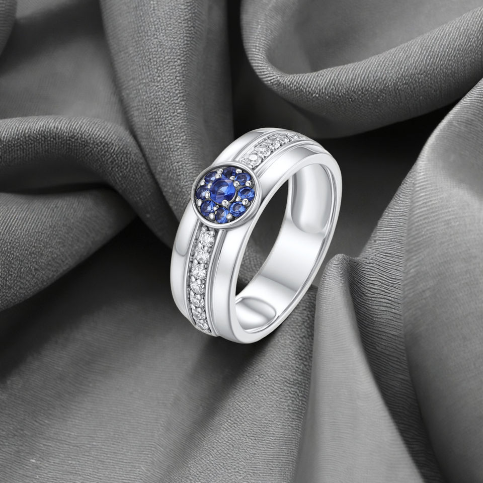 Bague de mariage en saphir naturel en or 18 carats pour homme personnalisée avec 23 diamants ronds taillés en brillant style luxueux
