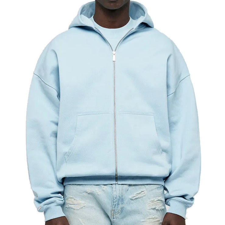 Sweat à capuche zippé noir surdimensionné en coton uni avec logo imprimé pour homme, coupe ample, 400 g/m², avec fermeture éclair pour unisexe