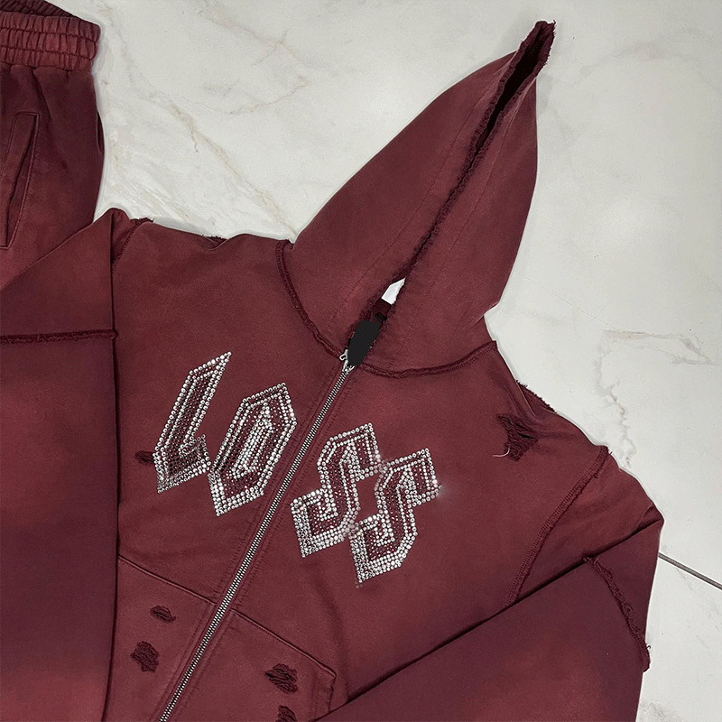 Ensemble survêtement pour homme personnalisé, sweat-shirt et pantalon de survêtement délavé à l'acide, coupe-vent, fermeture éclair, jogging long, survêtement en strass, hiver