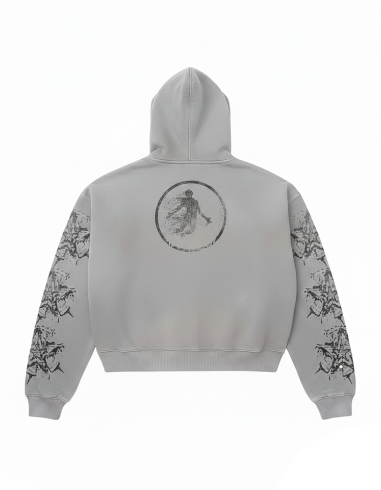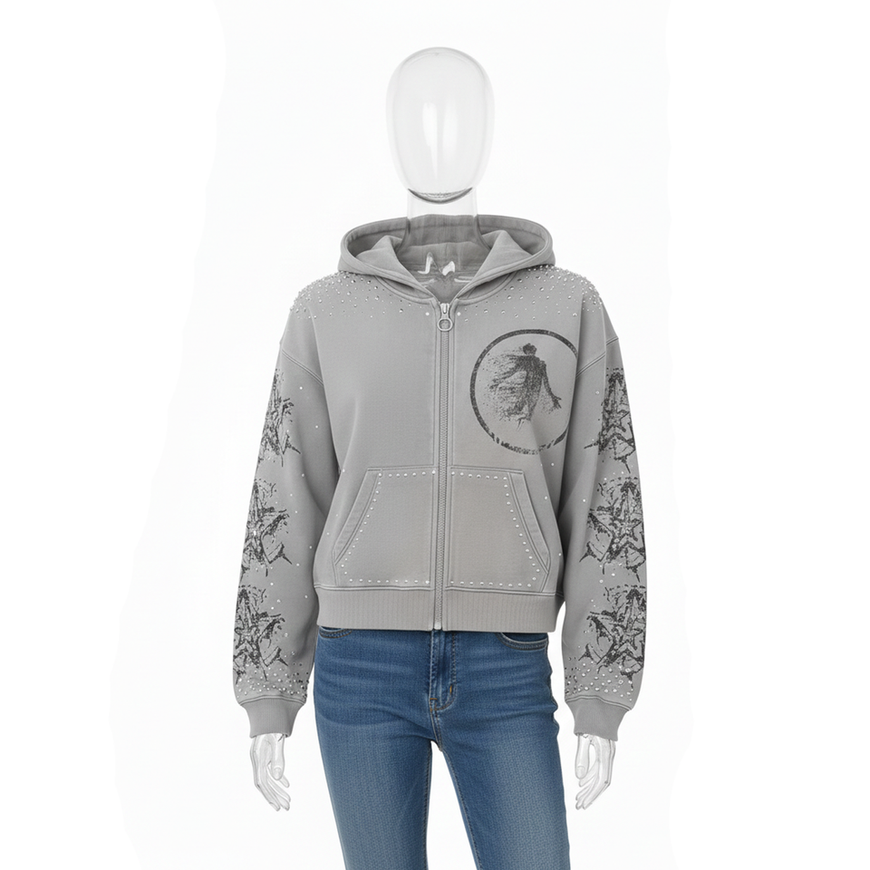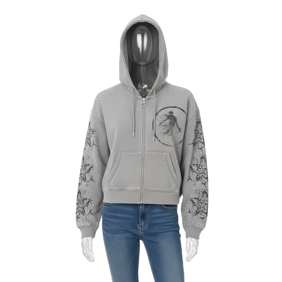Sweat à capuche zippé boxy en molleton délavé pour homme, 400 GSM, avec motif graphique vieilli en strass, idéal pour la mode streetwear
