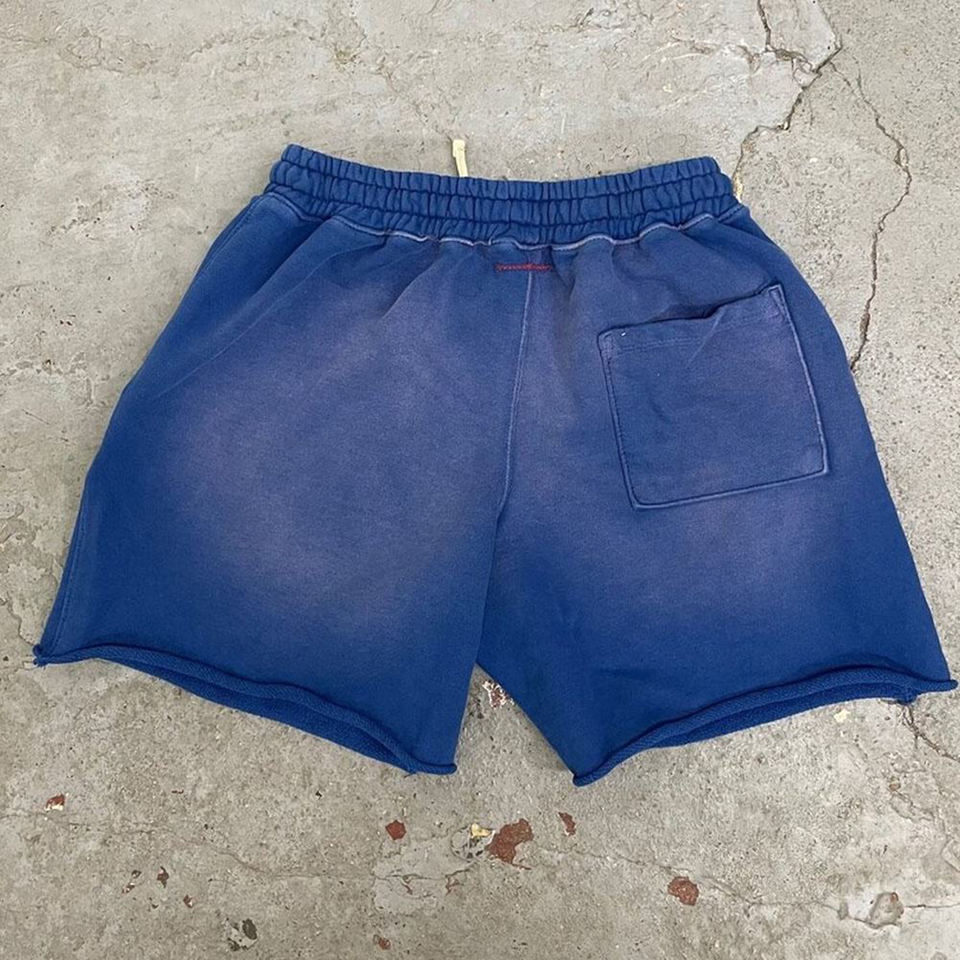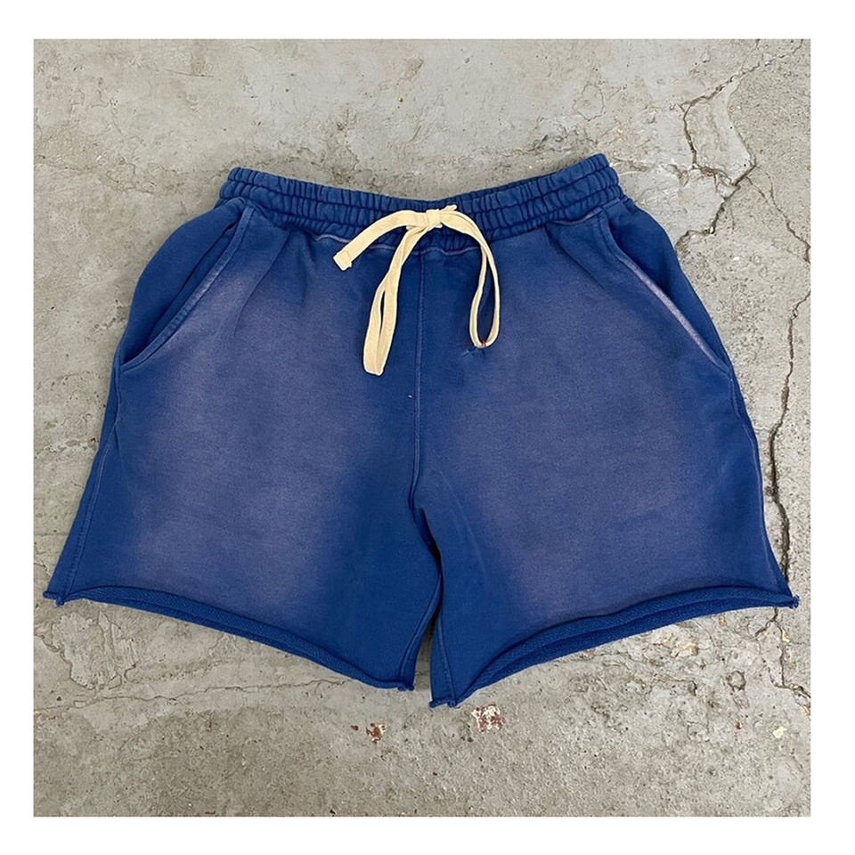 Short déchiré délavé à l'acide pour hommes, pantalon de survêtement vintage en coton éponge français High Street Pattern Decoration Mid