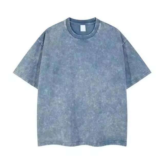 T-shirt personnalisé pour homme, délavé à l'acide, style streetwear délavé par le soleil, coupe courte et carrée, style vintage, 100% coton, épaules tombantes, économique